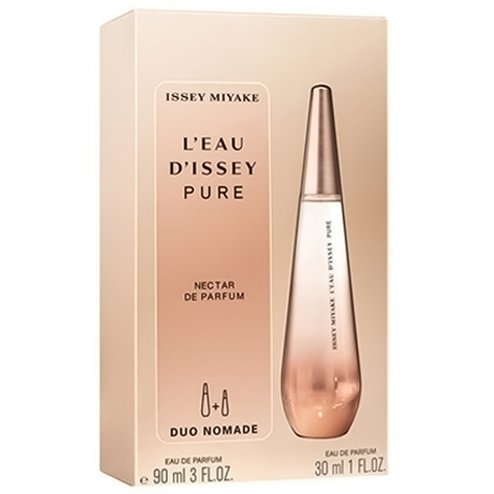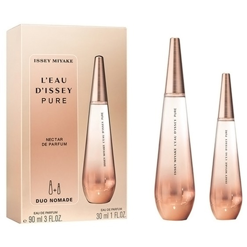 Experience an alluring scent with this Issey Miyake Pure Nectar Eau De Parfum 90ml Gift Set. The eau de parfum opens with the sweet notes of honey, pear and bergamot that blend with the middle rose, water, and peony notes to encapture the senses. This scent finishes the base of notes cashmeran, ambergris, white musk, sandalwood, and violet to create a floral fragrance perfect for women. The gift set comes with one Issey Miyake pure nectar eau de parfum 90ml spray and one Issey Miyake pure nectar eau de parfum 30ml spray. Make a perfect gifting choice with this set.