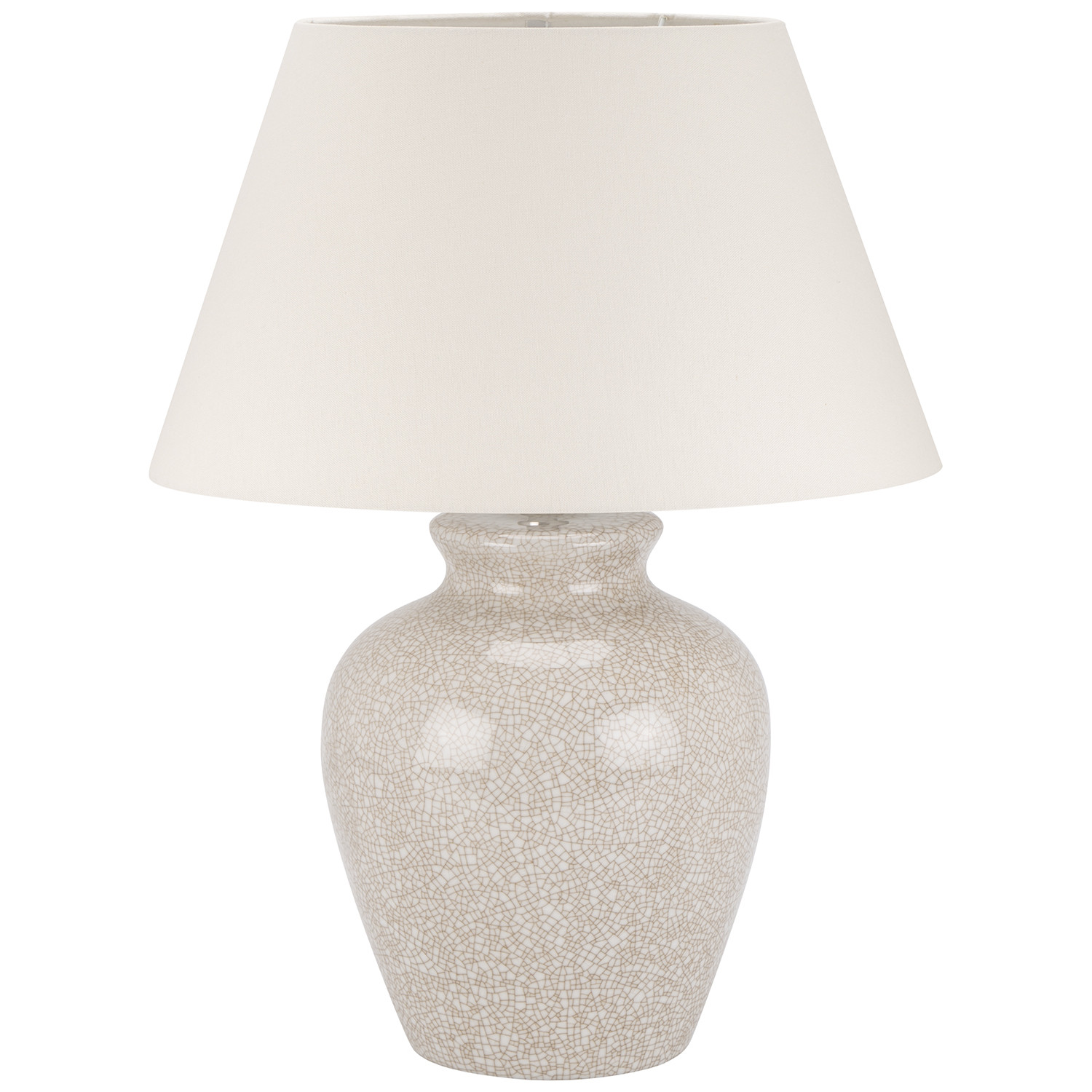 The Crackle Ginger Jar Table Lamp features a classic ceramic design with a mosaic-style appearance and glossy finish. Its beautiful ivory tone will match seamlessly with surrounding dcor while the complementing shade gives it a light and fresh appearance, even when switched off. Please click here to find our range of lightbulbs.