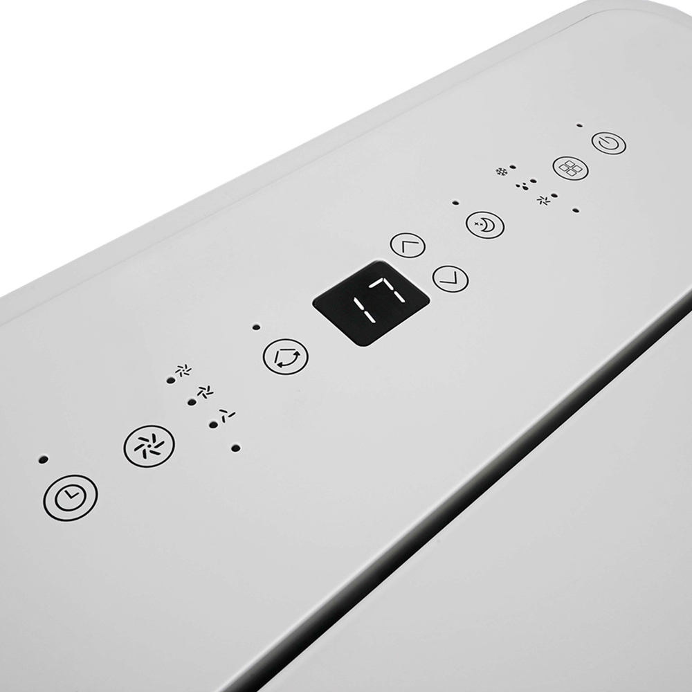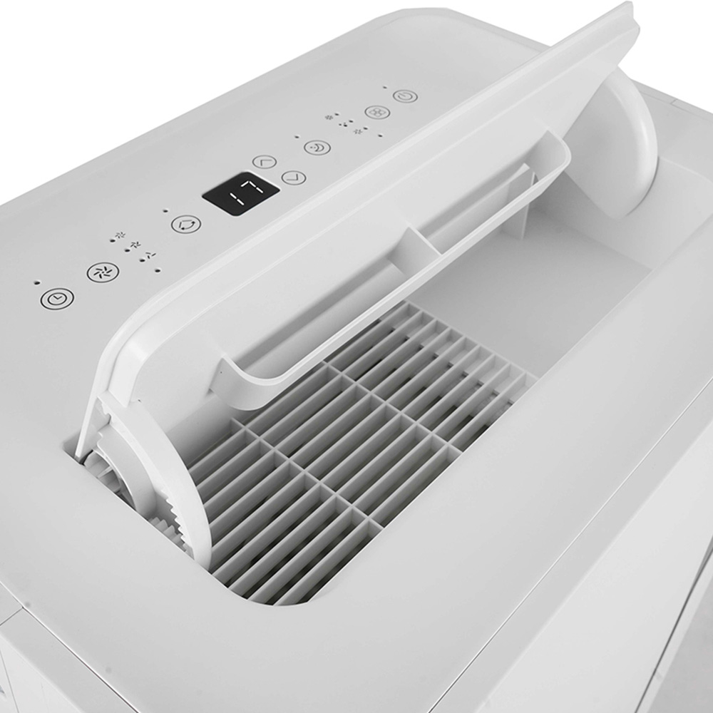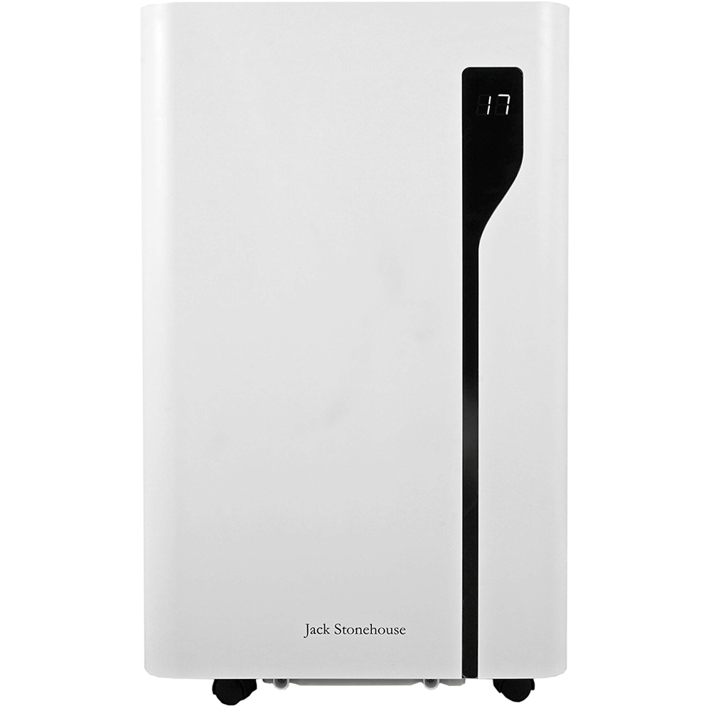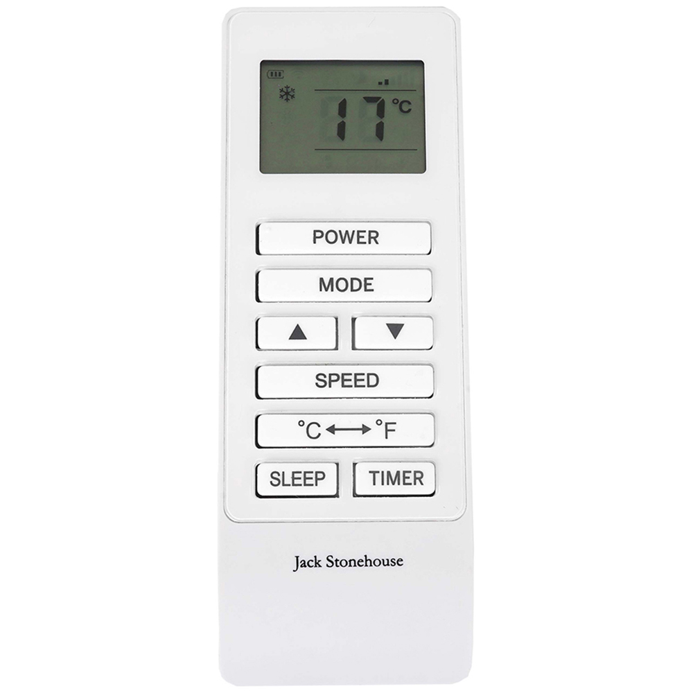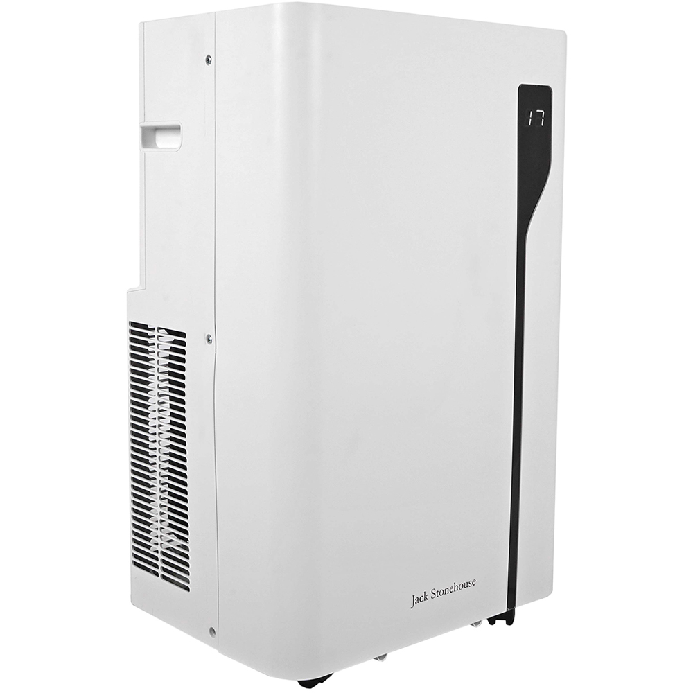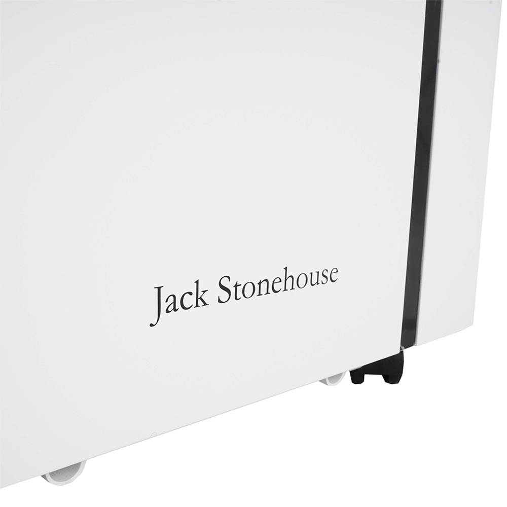 Get home the Jack Stonehouse 12000BTU Portable Air Conditioning Unit for effective cooling and dehumidifying. This high-capacity portable air conditioner is compact and works quietly with less than 65dB sound power levels. It effectively cools a 35m² room with its powerful R290 refrigerant. It features a class A energy rating, three-speed modes to suit your requirements, and a remote control. Additional features include an auto defrosting function, self-evaporating system, sleep mode and up to 24-hour timer options. It enables full flexibility on when and how powerfully to run the unit and save on energy. The easy movement is because of the castor wheels and recess handles, which maximises cooling around the house. The portable unit also includes an extended exhaust hose of 1.8m to let the vent out wherever you please. The water level indicator lets you know when the unit needs emptying with auto shut off when the tank is full. It avoids any impending damage to the air conditioner. The smart digital front temperature display and full top control panel enhance the overall look of the unit.