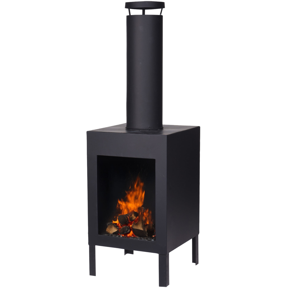 Transform evenings outdoors with a contemporary square chiminea that brings warmth and a modern flair to your garden or patio, featuring a sleek matt black metal finish and stylish cut-outs. Built from fire-rated steel and standing at 100cm, it’s designed for durability, easy to move and perfect for creating a cosy atmosphere during gatherings or quiet nights outside. Enjoy the blend of practicality and design as this chiminea offers reliable outdoor heating for gardens, making every moment outside more inviting.