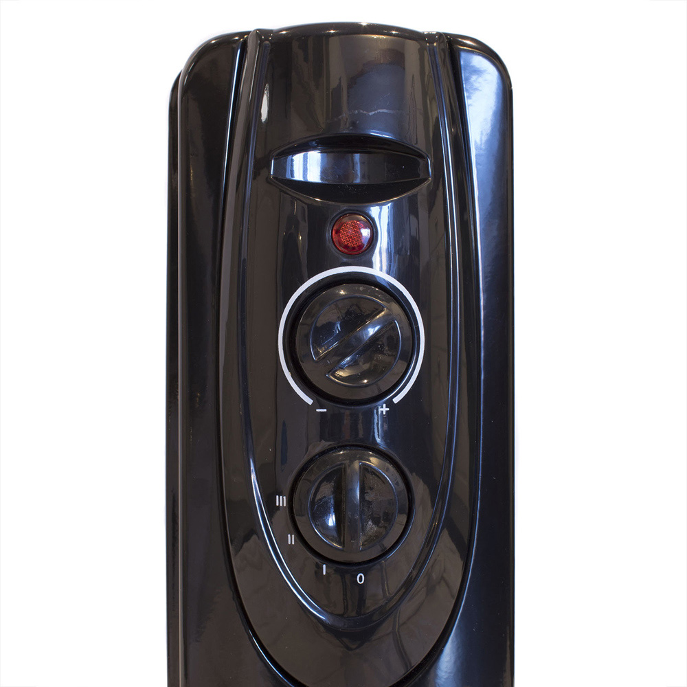 Stay warm and cosy with the convenience of a black Jack Stonehouse oil-filled radiator 1500W. With its compact design, this radiator produces an impressive amount of heat. It makes for a perfect for use in your home, office, or even when travelling. With four wheels attached, it can be easily manoeuvred around the room without straining your back. These heaters retain heat well due to the slow cooling of the oil, which means they don't need to be constantly turned on, resulting in lower electricity bills. It comes with standard overheat protection and a tip-over switch that automatically cuts off power if the unit falls over. Please note: Please be aware that oil-filled radiators can become very hot, so it is recommended to keep them a few feet away from walls and objects and out of reach of young children and pets. Avoid using the radiator in damp or poorly ventilated areas, and do not leave it unattended for extended periods of time.