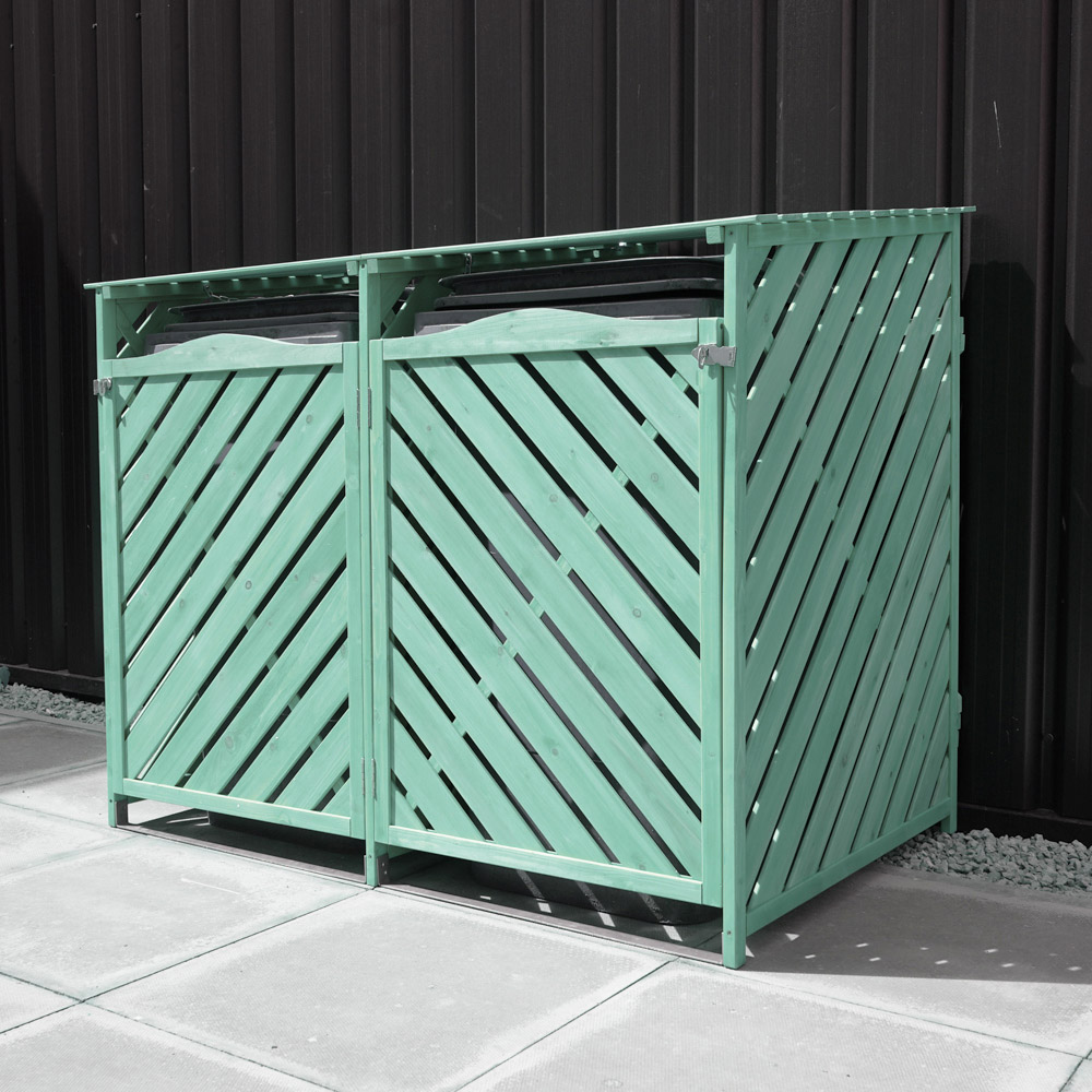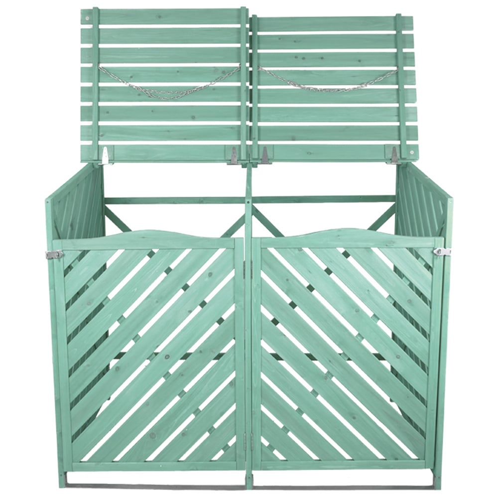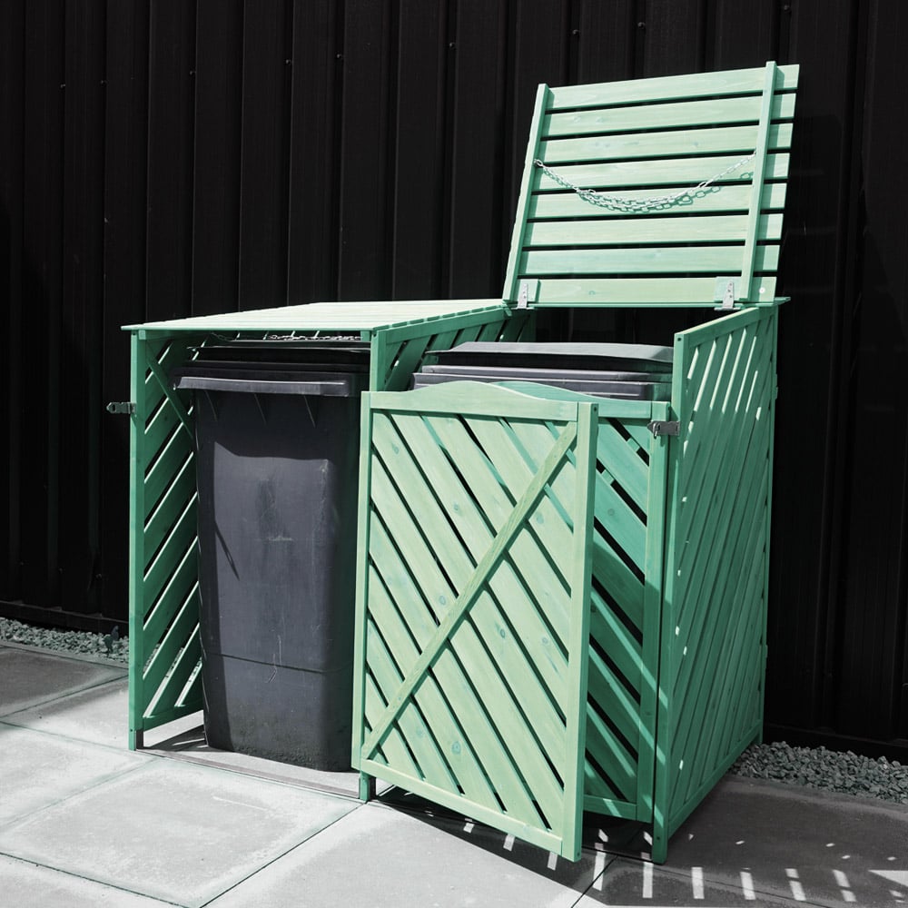 Maintain outdoor hygiene with this Double Wheelie Wooden Bin Storage from Jack Stonehouse. Finished in green, this bin storage is a stylish way of concealing two-wheelie bins at the front of your house or even in the garden. Sturdy and durable, it is made from strong wood with two lockable front doors for easy removable on bin day. Also, it comes with an easy-access lifetable top so that you don’t need to remove the bin each time you put something in it. Perfectly ventilated, this bin features slatted wood that prevents foul odour in your gardens. Plus, with two wheelie bins, the bin storage has a central divider, meaning you can use the unused side for other storage purposes. Easy to assemble, the bin storage is supplied flat-packed and includes the relevant fittings and instructions to make installation as easy as possible.