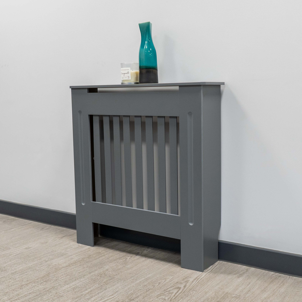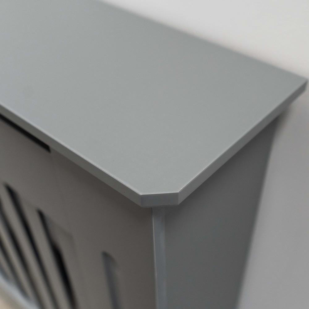 Add a touch of elegance to your home by installing Jack Stonehouse Grey Matt Vertical Line Radiator Cover Small. This vertical line radiator cover, painted in a modern grey with a stylish vertical line design, will be a stunning addition to your room while still allowing heat to be distributed evenly and efficiently from the radiator underneath it. Featuring gorgeous chamfered edges for an elegant design and interior flair, it offers the perfect way to give your radiator a new look, eliminating the need to spend lots of money and time replacing the radiator itself. This unit is ideal if you live in a smaller property. Introduce the unit into your home to create extra storage space. Your favourite ornaments no longer have to be relegated to the dusty confines of the cupboard. Instead, display them proudly on your radiator cabinet. Improved quality and packaging. Includes all fittings to mount invisibly to the wall for a smooth finish. Easy self-assembly. Size: Small.
