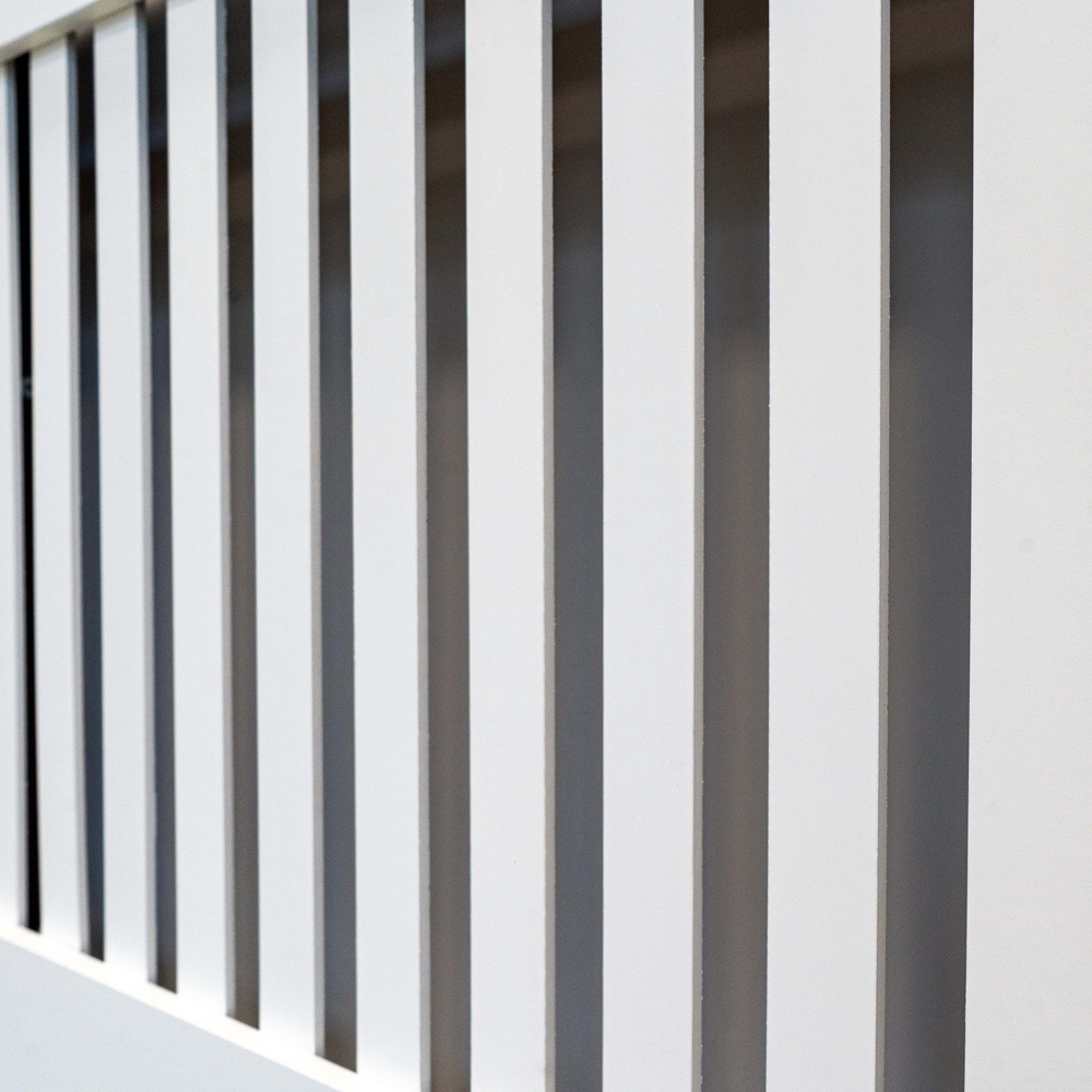 Keep your radiator protected while adding a touch of elegance to your room with this stylish Radiator Cover from Jack Stonehouse. Smartly designed with vertical lines, the cover makes a stunning addition to your room while still allowing heat to be distributed evenly and efficiently from the radiator underneath it. This elegant painted radiator cover is finished in a fresh, neutral white with a modern vertical grill and smart chamfered edges, all of which work harmoniously with all decor styles. Budget-friendly with superb quality, this stylish cover hides tired or old-fashioned radiators effortlessly and provides a generous amount of display space for plants, ornaments, pictures, and more. Easy to self-assemble, it is constructed from durable MDF for longevity and includes all fittings to mount invisibly to the wall for a smooth finish. Size: Medium.