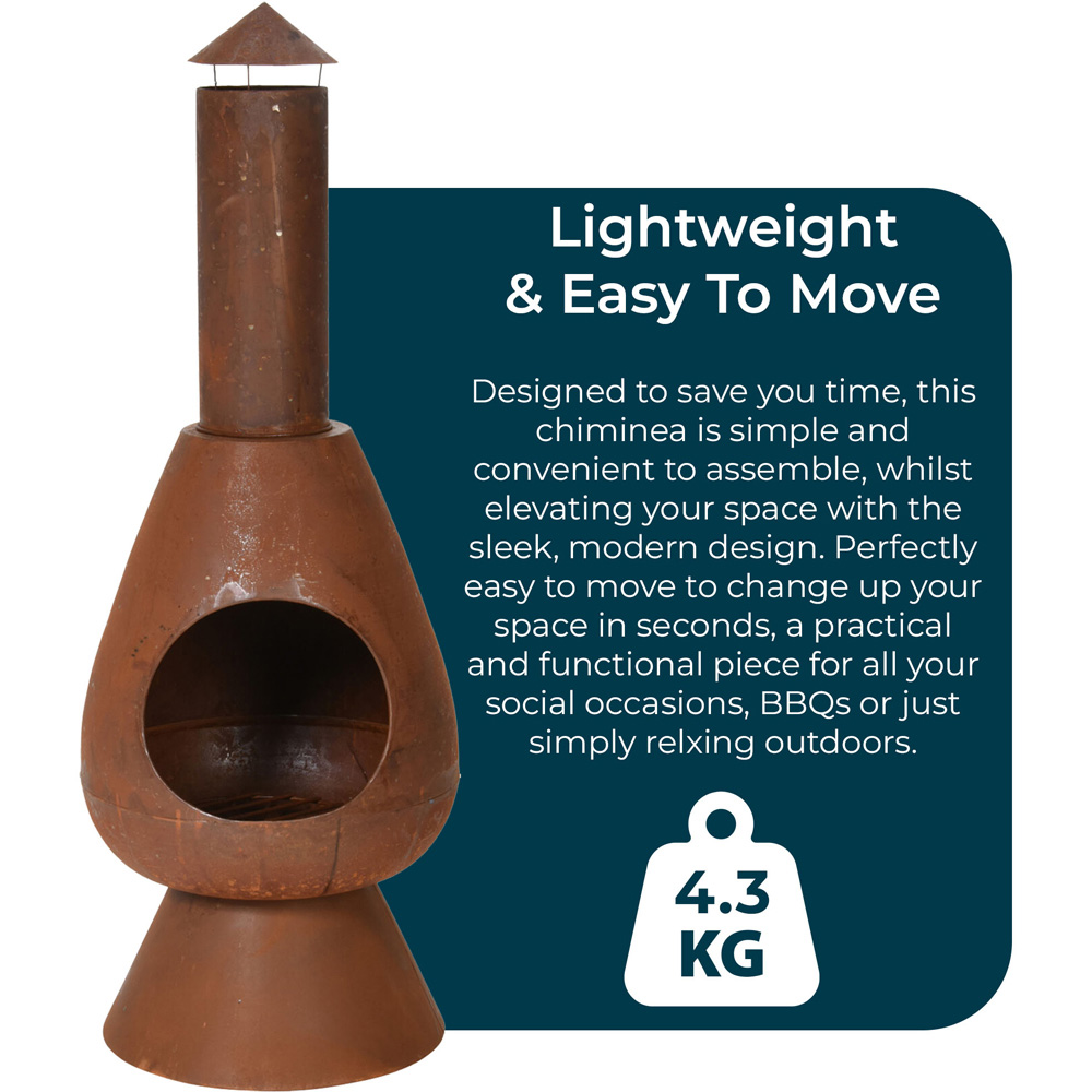 Bring warmth and a rustic charm to your evenings with a tall outdoor log burner, designed to elevate patio gatherings and garden parties with its striking rust finish and sleek modern silhouette. Enjoy the inviting glow and heat as you relax outdoors, knowing the sturdy fire-rated steel construction ensures safe and reliable use. Lightweight at just 4.3kg, it's easy to reposition and creates an appealing centrepiece for any garden, terrace or patio, making alfresco moments last longer in comfort and style.