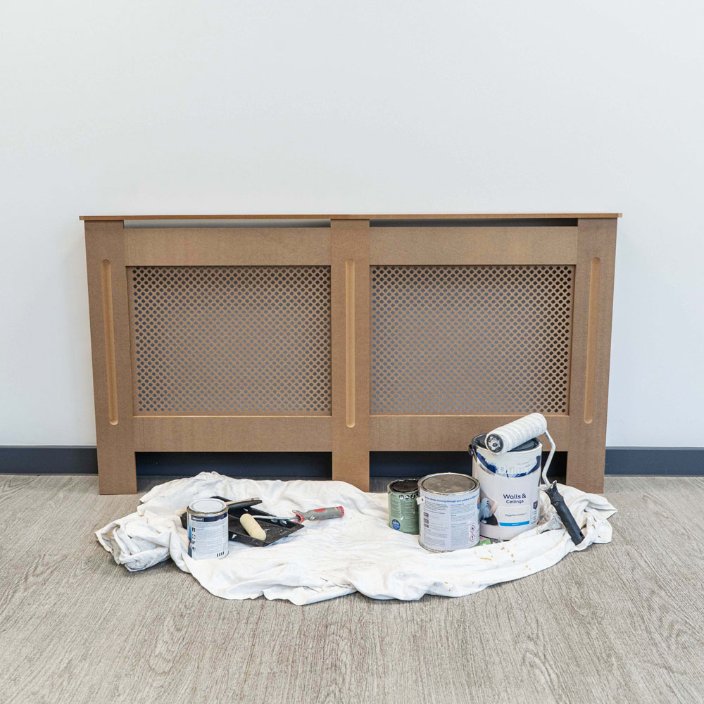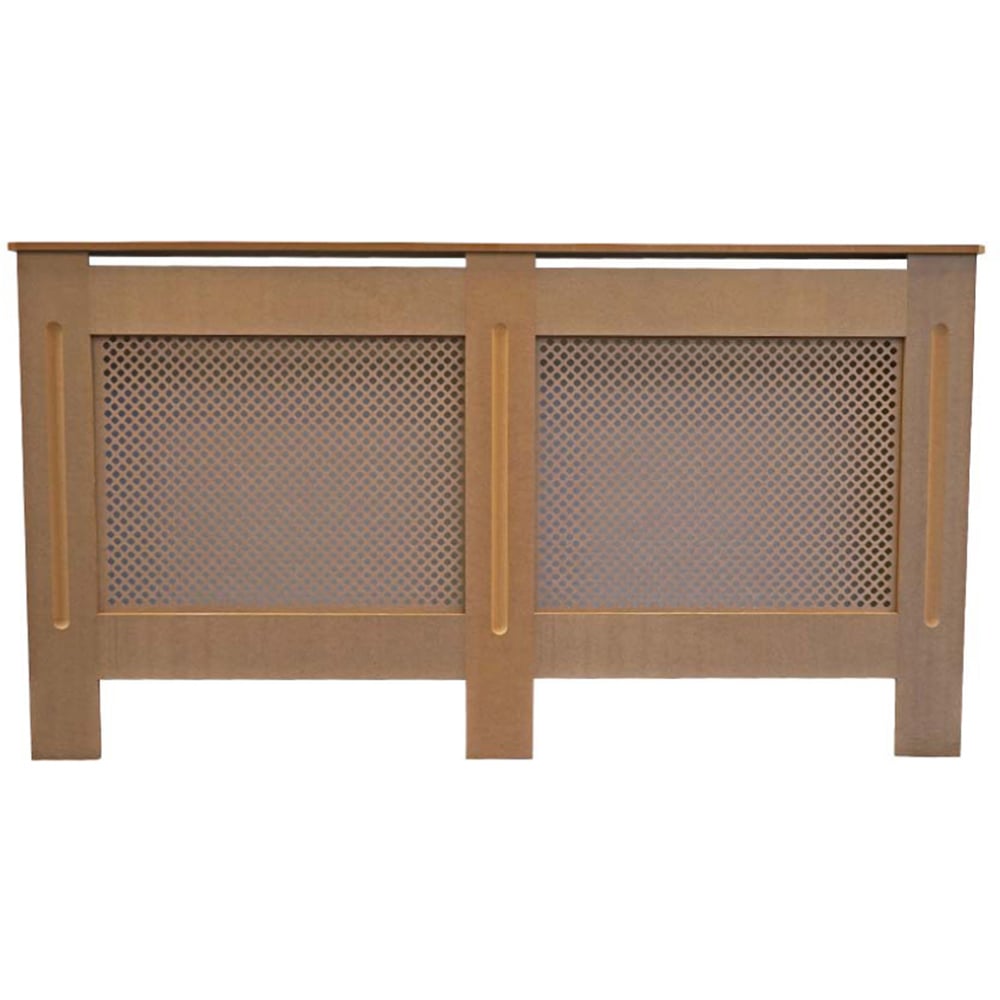 Brighten up your radiators with this Jack Stonehouse Natural Unpainted Diamond Grill Radiator Cover. Ready for painting, this natural cover comes with an unpainted surface and a very pleasing design, with all visible edges nicely chamfered. Its front-facing uprights have a vertical rounded groove machined into them, which when painted offer an attractive classic appearance. This radiator cover makes a stunning addition to your room that allows heat to be distributed evenly and efficiently from the radiator underneath it. It makes a stylish solution to hiding an outdated radiator and can be personalised to create your custom-coloured piece of furniture. This cabinet features a diamond grill design and is left unpainted to give you the freedom to choose your palette and finish for an effortlessly chic style. Once painted, the cover is easy to keep clean and can be used to display ornaments, photographs, plants, and more. Also, if you're reluctant to pay out for an expensive new radiator, this beautiful cabinet is the perfect solution. Easy to assemble, putting together this cover is a fast and simple process so that you can focus on the fun part - painting. Plus, the straightforward and easy-to-follow instructions make assembly a breeze for all. Sturdy, the cover is constructed from durable MDF for longevity and strength. Wall-mountable, the cover includes all fittings to mount invisibly to the wall for a smooth finish. Size: Large.
