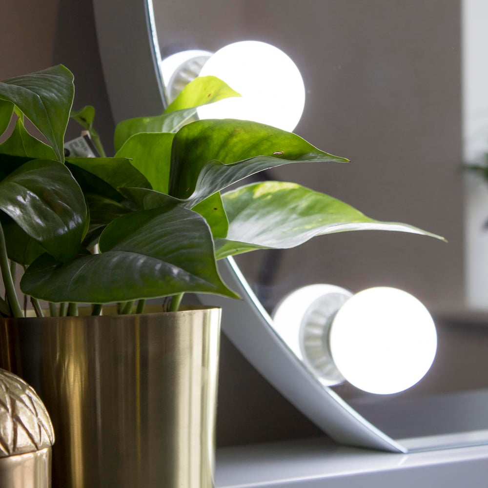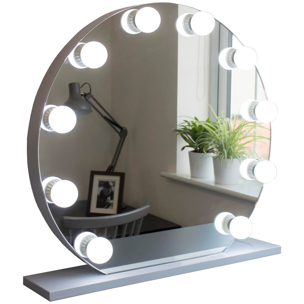 The Jack Stonehouse Audrey Hollywood LED Frameless Mirror 12V is the perfect addition to any beauty lover's dressing room or boudoir. With its Hollywood-inspired design, this tabletop mirror with lights will make you feel like a glamorous starlet. The large, eye-catching round design with a white base is sure to catch your eye. The ten retro-looking style LED globe bulbs provide bright and balanced illumination, making it the ultimate beauty tool for achieving flawless makeup and hair. The easy dial controls and adjustable bulb brightness allow you to customize your lighting to your liking. The smart memory function stores your last light settings for next time, and the mirror can be wall-mounted with the included fixtures. This standout decorative gadget for your dressing table, vanity top, or makeup station comes with an additional spare bulb and a 12-month manufacturer's warranty for peace of mind. It plugs into the wall via cable, so there's no need for hardwiring.