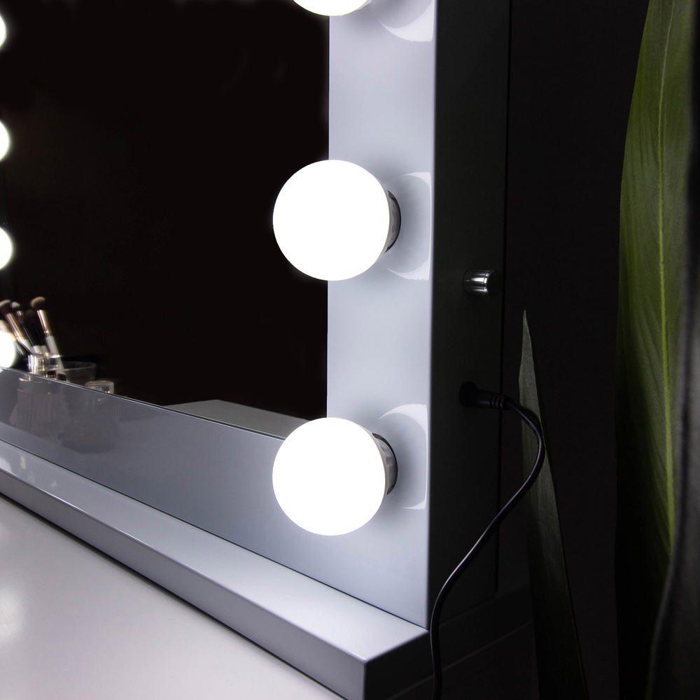 Enhance your make-up experience with the Jack Stonehouse Marilyn Hollywood Mirror 12V. This Hollywood-inspired tabletop mirror is designed to provide the perfect illumination for flawless make-up application. With 14 large, long-lasting LED plastic globe bulbs, it emits bright and even light, ensuring that every detail of your make-up is highlighted. The quick and easy dial control allows you to adjust the brightness to your preference. It features a smart memory function. The smart memory function allows it to remember your last lighting setting, making it convenient for your everyday beauty routine. The sturdy yet slender and lightweight metal frame and base make it easy to place on your dressing table, vanity top, or make-up station. It plugs into a socket without the need for extra wiring, providing a hassle-free setup. Whether you choose to stand her on a tabletop or hang her on the wall, she will undoubtedly become the focal point of the room. Includes 12-month manufacturer's warranty.
