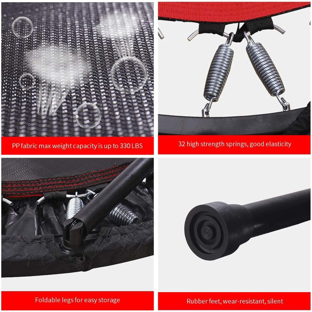 The unique quarter-folding design of Fitness Rebounder, including the leg tube using folding spring legs, is very easy to assemble and disassemble. After folding, it is small in size and easy to store. Jandecfit exercise trampoline for adults jump cloth is made of STRONG PP MESH, the cloth surface is not only smooth and soft, but also scratch-resistant and wear-resistant. With high elasticity and high toughness, it can withstand 330 pounds of gravity. Using a Jandecfit mini trampoline for effective aerobic exercise can promote blood circulation, Exercising on a mini trampoline is the most popular way to achieve your aerobic fitness goal Ten minutes of continuous jumping is equivalent to calories burned for half an hour of jogging. Jandecfit workout trampoline is made of high-quality steel and a high-elasticity spring. The surface of the spring is plated, which has anti-oxidation and anti-rust properties. The base shield is made of strong Oxford fabric, which protects the spring and metal frame from friction and also prevents foot injuries. Greatly improve the safety performance. Use a trampoline for fitness, our stretches smoothly further, making you slow down to a soft, almost silent landing on the mat. Highly elastic stores the energy absorbed during deceleration and returns almost all of them, having no negative effect on your knees. Before using the Jandecfit trampoline, you should first check whether each spring is installed properly and whether the W buckle has fallen off. If there is any fall-off, you can install it back to the specified position. It can be used after checking the correct. Fitness trampoline is the most popular weight loss exercise at the moment, which is effective in burning fat and healthy shaping. Just 20 minutes daily bouncing to help you burn 1000s of calories and lose weight fast. Size: 100L x 100W x 25H centimetres, Frame Size: 40 inches, Item Weight: 9Kg, Maximum Weight Recommendations: 149.69Kg, Colour: Black Red, Frame Material: Alloy Steel, Foldable Design, Comfort, Sporty, Safety And Stability, Comfortable bouncing for healthy knees, Highly effective exercise.