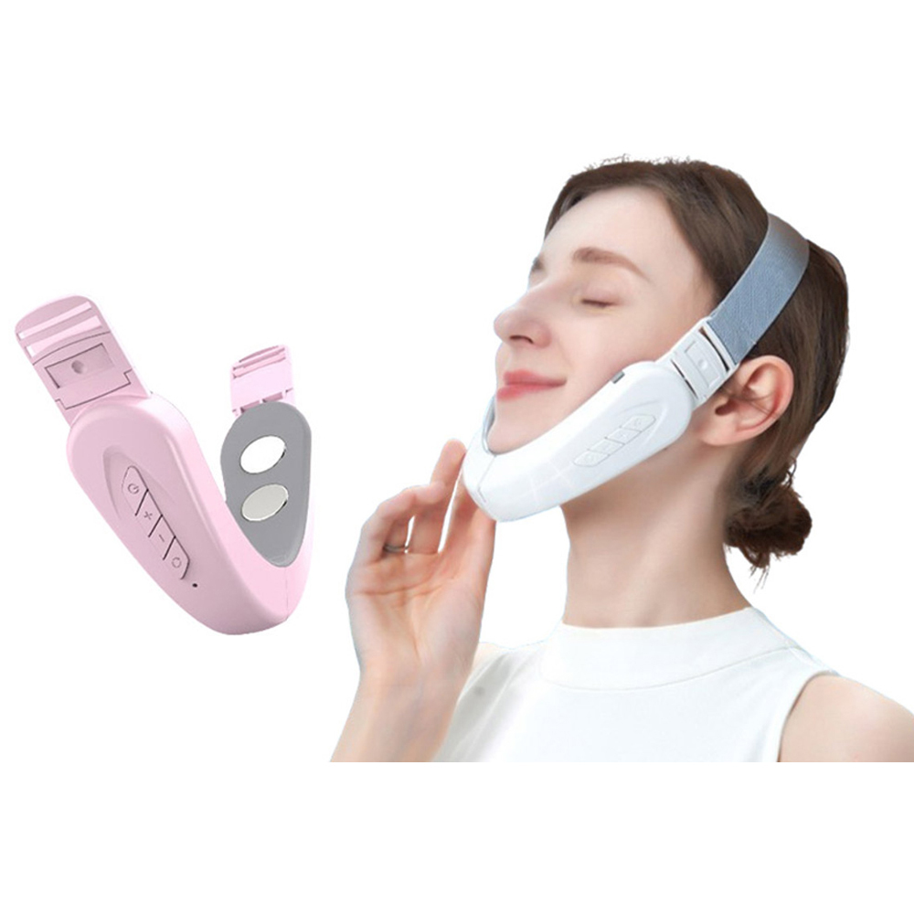 Presenting the Jaoyeh 8418 Chin Strap Massage Device Pink 150mAh, a tool designed to redefine contours and enhance skin appearance. Crafted from durable plastics, this device uses micro current technology to delicately enhance skin texture, reshape 3 dimensionally facial contours, and stimulate deep muscle refinement capabilities. Equipped with a skin-friendly stainless steel conductive plate that fits more comfortably and has a better lifting effect. It is designed for convenience, requiring 15 minutes per day to help shape a small V-shaped face and relax masseter muscles, while also tightening the double chin area for more defined jawline. The device operates via USB charging, with a built-in 150mAh battery capacity ensuring reliable performance. With a power rating of 4W, and a rated voltage of 5V, it provides efficient operation for daily facial care routines. Size: 15 x 6.8 x 4.3cm.