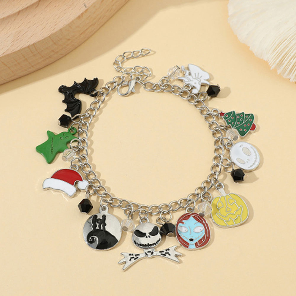 Prepare for the holiday season with the Jaoyeh Nightmare Before Christmas Bracelet. This bracelet showcases a unique ghost design, ideal for adding a playful and festive touch to your costume or everyday outfit. It's also a great accessory for adding a spooky and fun element to your Halloween ensemble or for themed events.