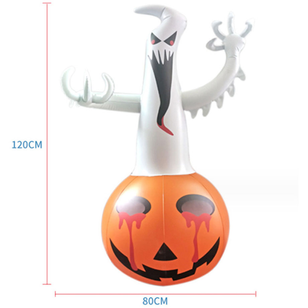 Prepare for the holiday season with the Jaoyeh White Inflatable Pumpkin and Ghost Halloween Decoration. This inflatable Halloween decoration set includes a horrifying pumpkin head and a white ghost, making it a striking and eerie addition to your Halloween decor. It is perfect for creating a haunted atmosphere in your yard or party space. The set also features a spooky and eye-catching design.