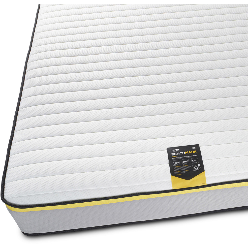 Upgrade your sleep sanctuary with this Jay-Be Benchmark S5 Double Hybrid Eco-Friendly e-Sprung Mattress. Featuring innovative sustainable sleep technologies, this deep e-spring core mattress is topped with micro e-pocket springs for ensuring posture support throughout the night. Made in the UK and designed with the environment in mind, this mattress is foam-free and comes with an eco-award-wining Advance e-fibre. Plus, it comes with a five-year guarantee for added peace of mind. The e-fibre comfort layers used in the mattresses are made from 100% recyclable plastic bottles, diverting over 70 million from going into landfills or oceans.