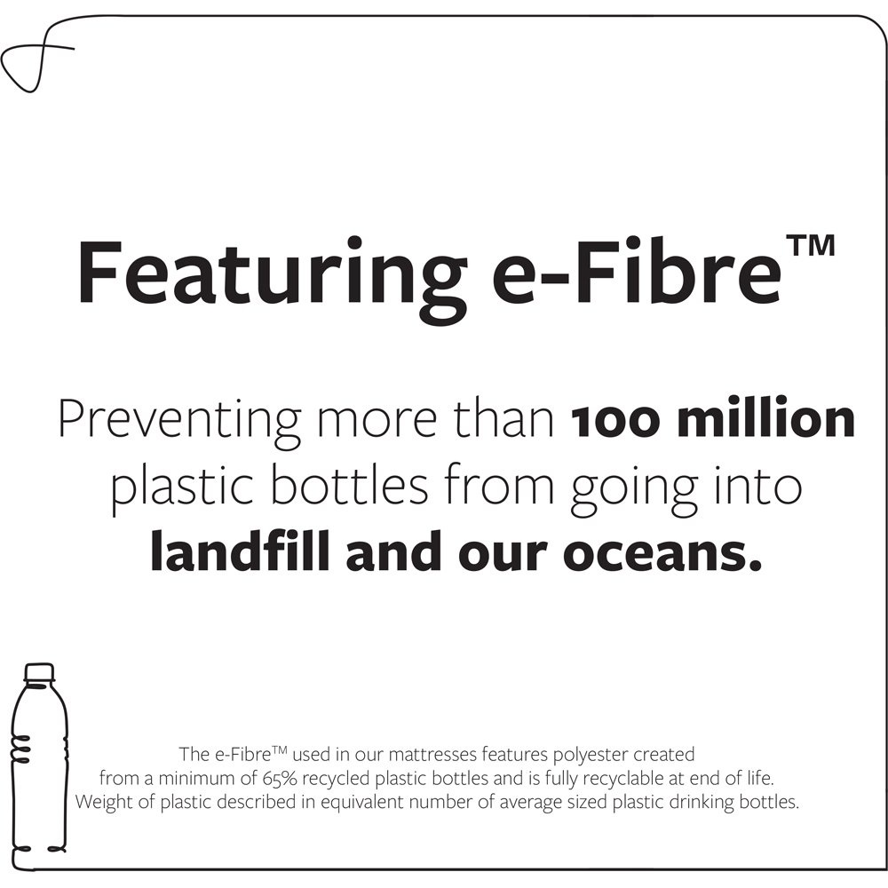 Ensure optimum comfort with this Jay-Be Bunk e-Sprung Children’s Mattress. This eco-friendly mattress seamlessly combines comfort, sustainability, and safety. Designed for bunk beds, its e-spring core ensures even body support which is crucial for growing bones and muscles. Crafted with the environment and your child in mind, the mattress is entirely foam-free and does not produce harmful chemicals or VOCs. Ensuring a relaxed sleep, its e-Fibre comfort layers are breathable and moisture-wicking helping to regulate body temperature. Also, the e-Fibre features polyester made from at least 80% recycled plastic bottles and is completely recyclable to make an eco-friendly choice. Plus, it comes with a five-year guarantee for added peace of mind.