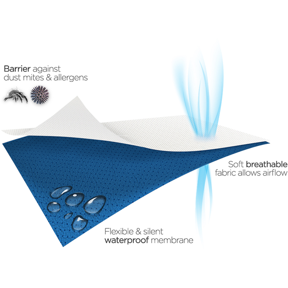 Extend the life of your mattress with this Jay-Be Single White Waterproof Supreme and Visitor Bed Mattress Protector. Made to measure Jay-Be folding beds, this waterproof mattress protector comes with micro-pores for breathability. Made with hypoallergenic materials, the protector works as an effective barrier against dust mites, allergens and mould. Moreover, the knitted surface fabric is topped with a silent and flexible membrane for protection and comfort. Easy to maintain, this mattress protector is machine washable at 40°C. It can be used as a fitted sheet and mattress protector in one.
