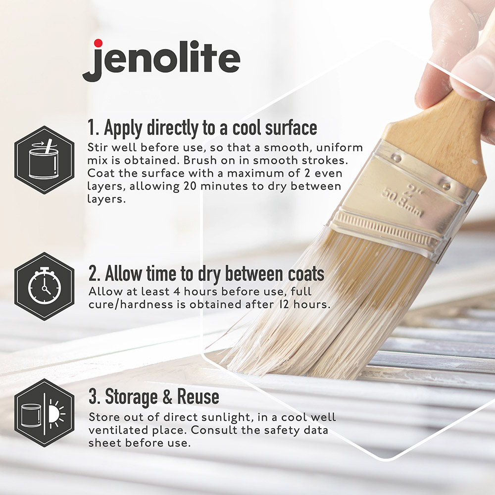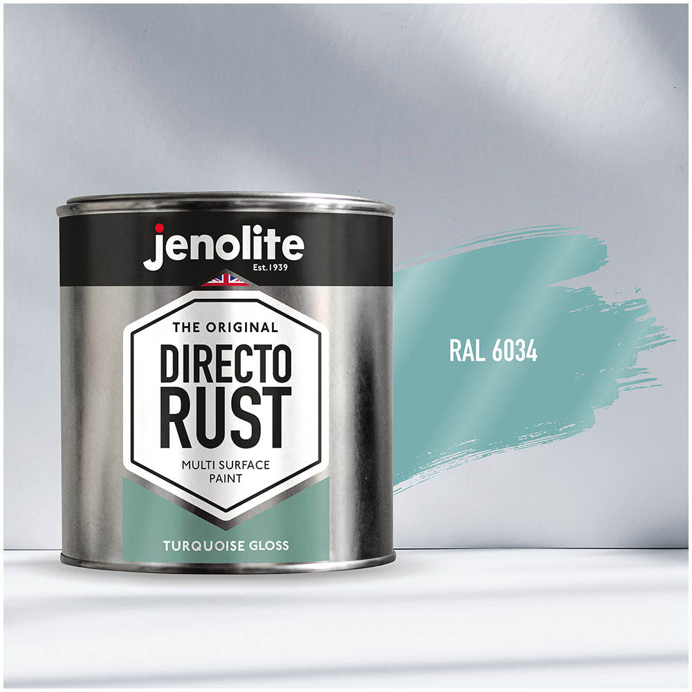Renovate your home with beautiful Jenolite DirectoRust Turquoise Gloss Paint 1L. It is a simple and unique formula which you can apply directly to metal, wood, plastic, ceramic, and even rusted surfaces and get a new look. It saves you much time by being an all-in-one solution acting as a primer, undercoat, and topcoat. The smooth, high-quality satin finish looks great and provides excellent resistance to rust and corrosion, for a long-lasting finish. This paint is up to the task whether you're painting indoors or outdoors. It is available in a variety of colours and finishes.