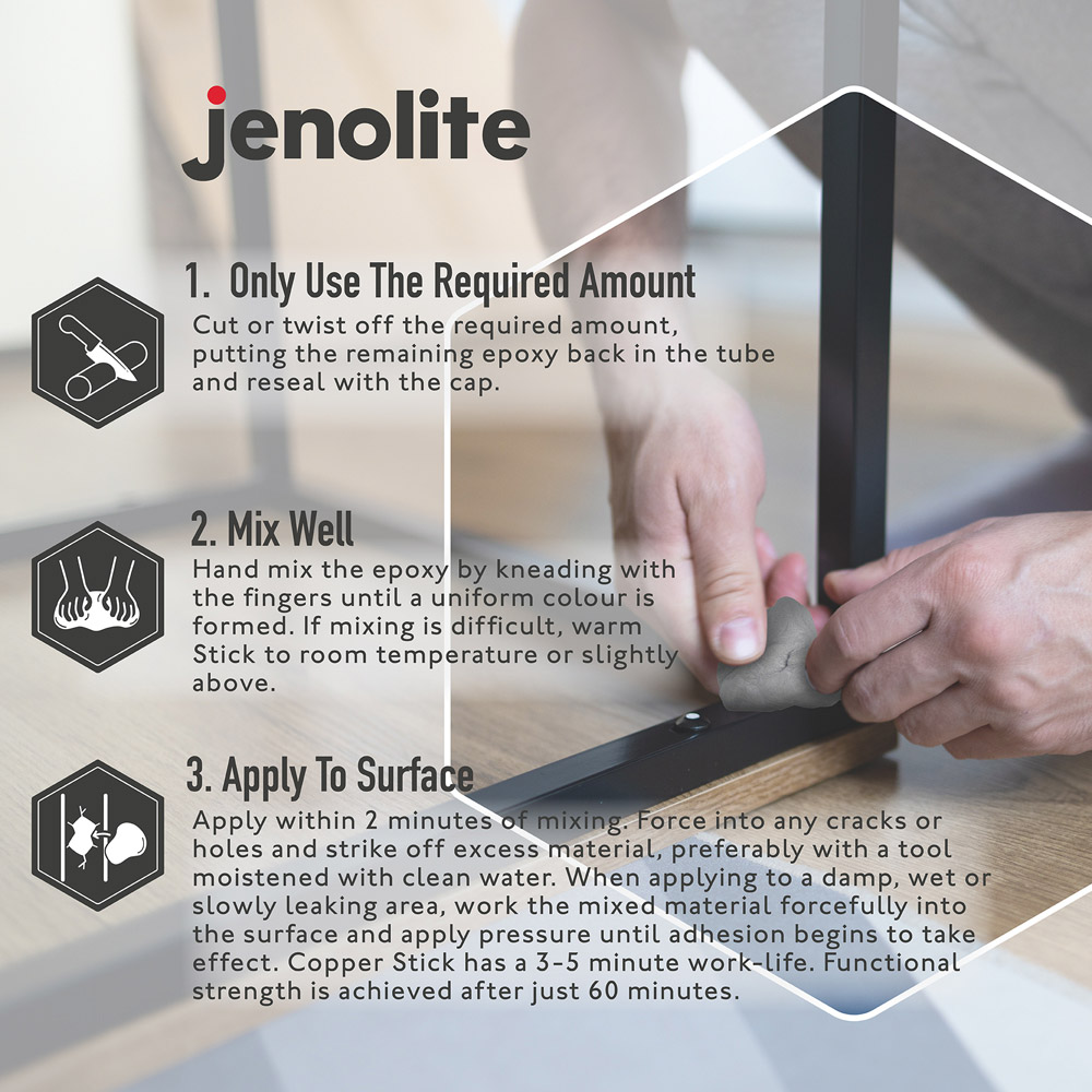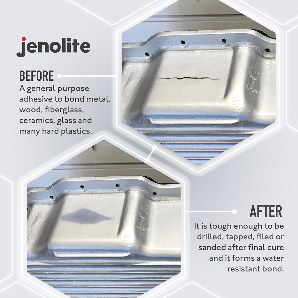 Say goodbye to imperfections with this Jenolite Aluminium Epoxy Putty Repair Stick. This non-rusting, aluminium-reinforced epoxy putty helps quickly repair or rebuild anything made of metal. Its two-part epoxy resin can be mixed by hand and applied directly to the area that requires repairing or rebuilding. The putty is ideal for repairing scratched, chipped and cracked aluminium and other metals. Once, fully cured, the putty can be drilled, tapped, machined, ground, filed and even painted. Easy to use, it is essential for any mechanic's repair kit. Moreover, it is waterproof and corrosion-resistant for added convenience. Size: 112g.