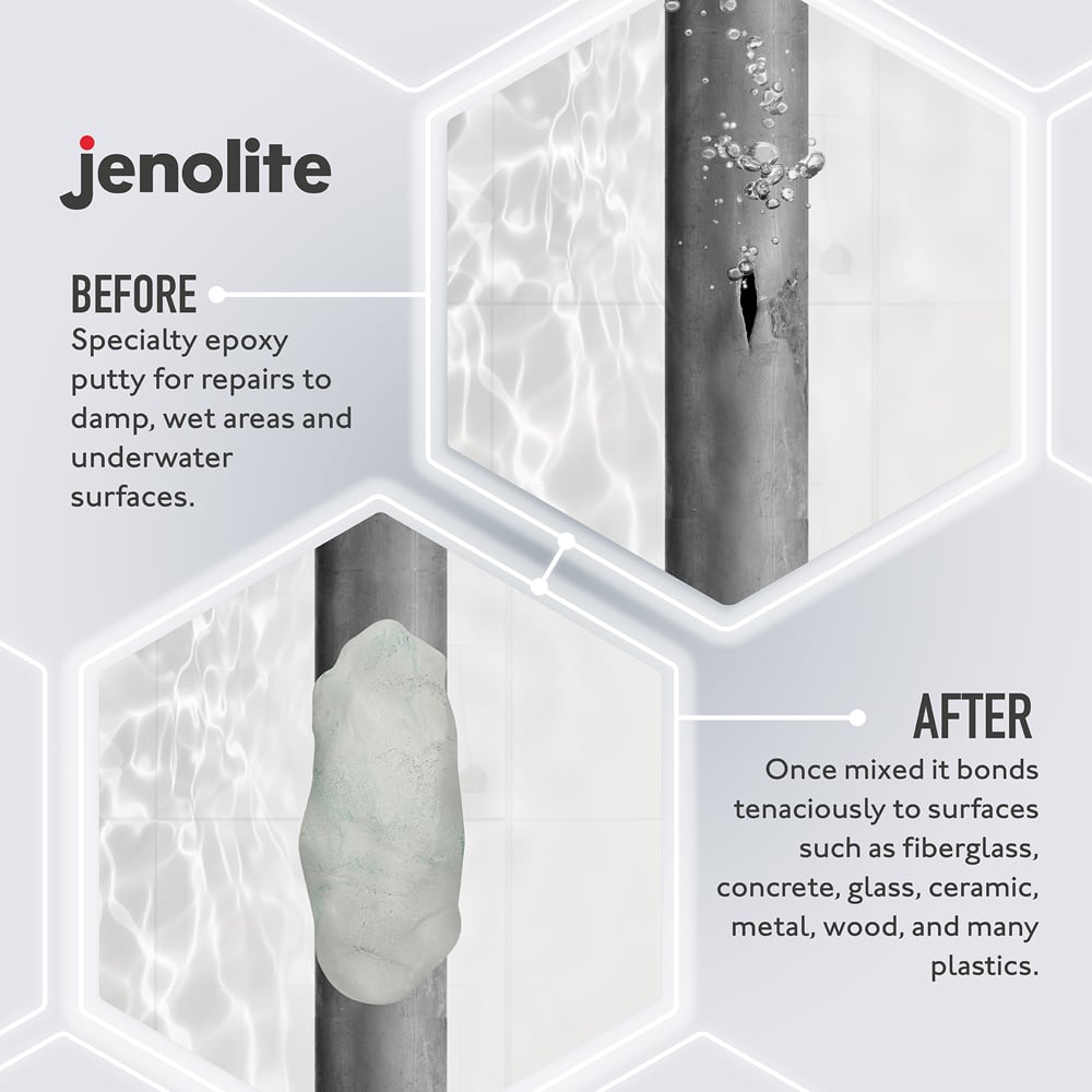 Make repair easy from small cracks to major fixes with Jenolite Epoxy Putty Stick Underwater Repair 112g. This two-component epoxy stick can be used to repair and rebuild most surfaces, even those underwater. It is hand-mixable, and the advanced formulation is ideal for making repairs to damp, wet areas and even underwater surfaces. After hand mixing it can be applied underwater be it fresh or salty water. It will bond to surfaces such as fibreglass, metal, wood, plastic and concrete. Ideal for marine repairs and repairs to damp, wet and underwater surfaces, such as holes, cracks, leaks and gouges in decks and hulls, swimming pools, hot tubs, spas, recreational equipment, as well as leaking pipes, tanks and gutters. Fully functional after 60 mins, once fully cured it is completely waterproof and can be drilled, tapped, machined, ground, filed and even painted.