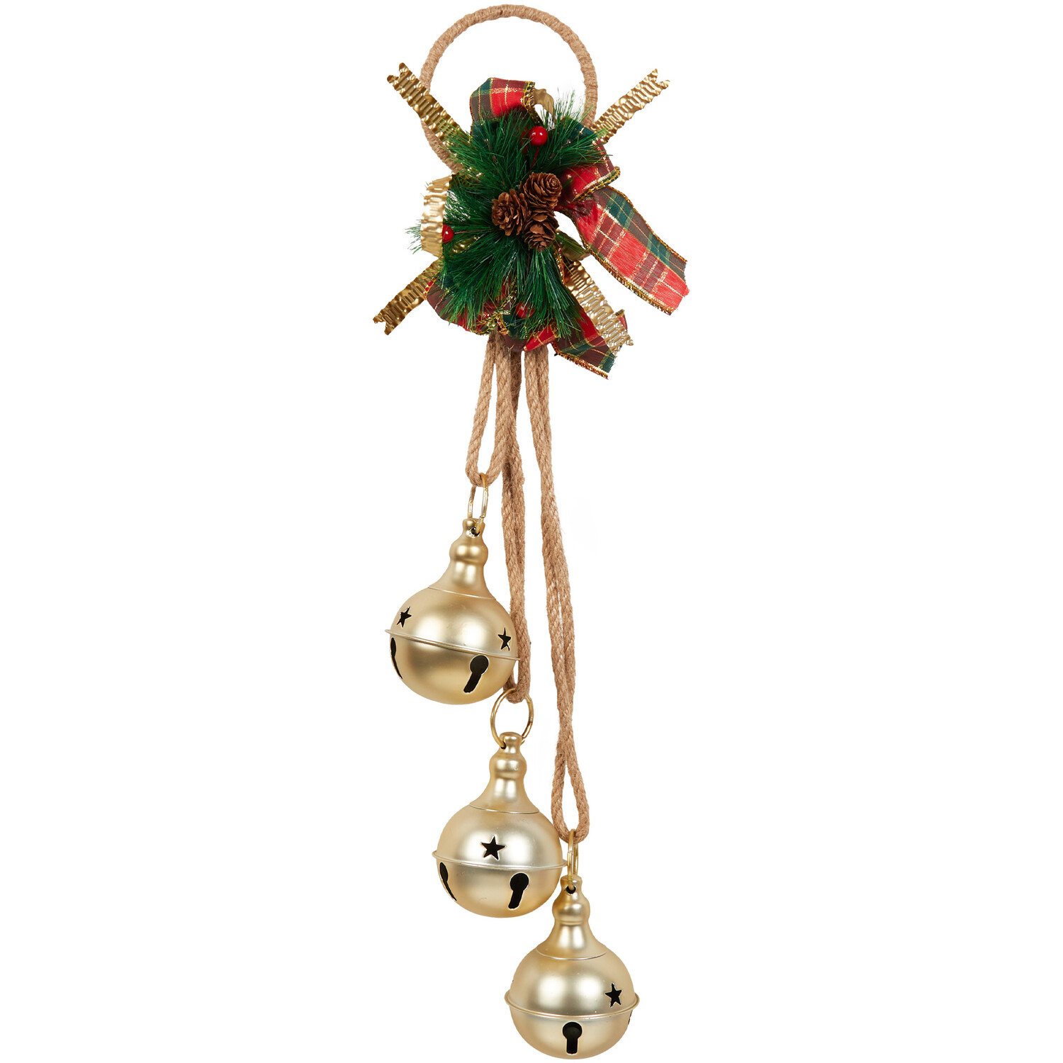 Spread the Christmas cheer with ease this winter by decorating your door with our traditional Jingle Bell Door Hanger. The hanger features three golden jingle bells and a collection of artificial festive foliage accented with a tartan ribbon to coordinate effortlessly with your classic Christmas decorations. It's quick and easy to hang and will make a lovely addition to your space.