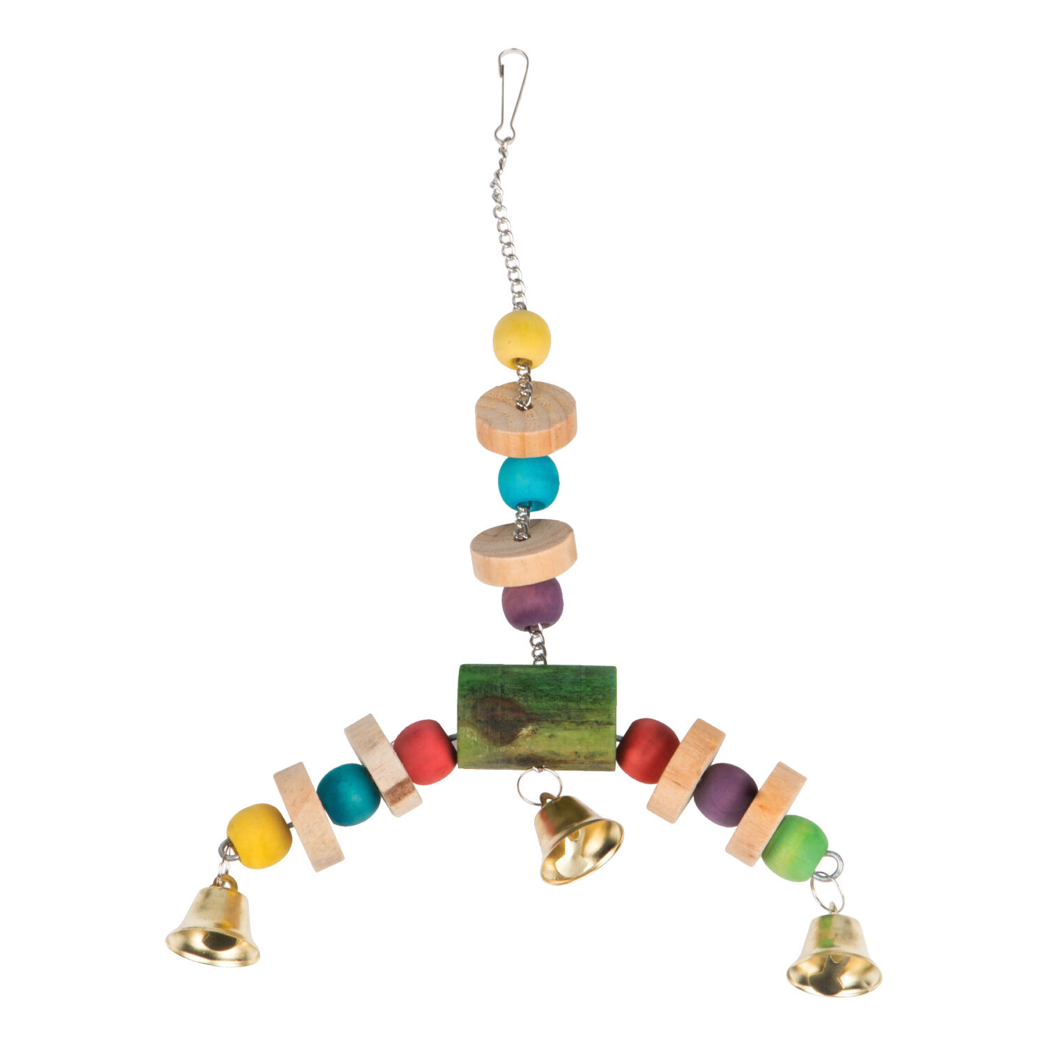 This Jingler Wood Bird Toy in The Bird House collection by Happy Pet is recommended for small to medium sized birds. This brightly coloured toy is made from wood and has been designed using non-toxic colours and dyes. Guaranteed to encourage natural chewing and playing, it can help to prevent unwanted feather picking. A great accessory to brighten up your bird's cage, it's easy to attach thanks to the metal clasp.