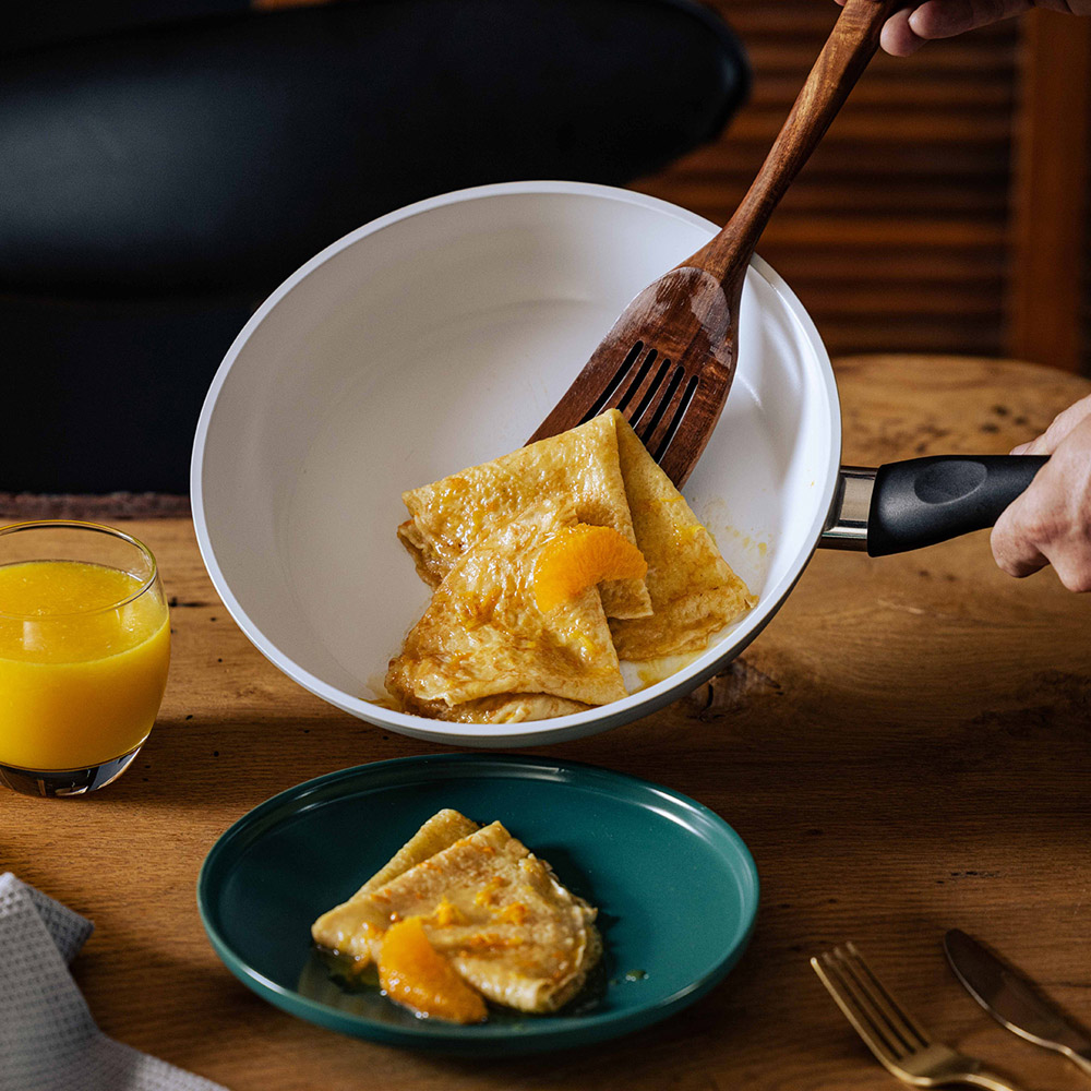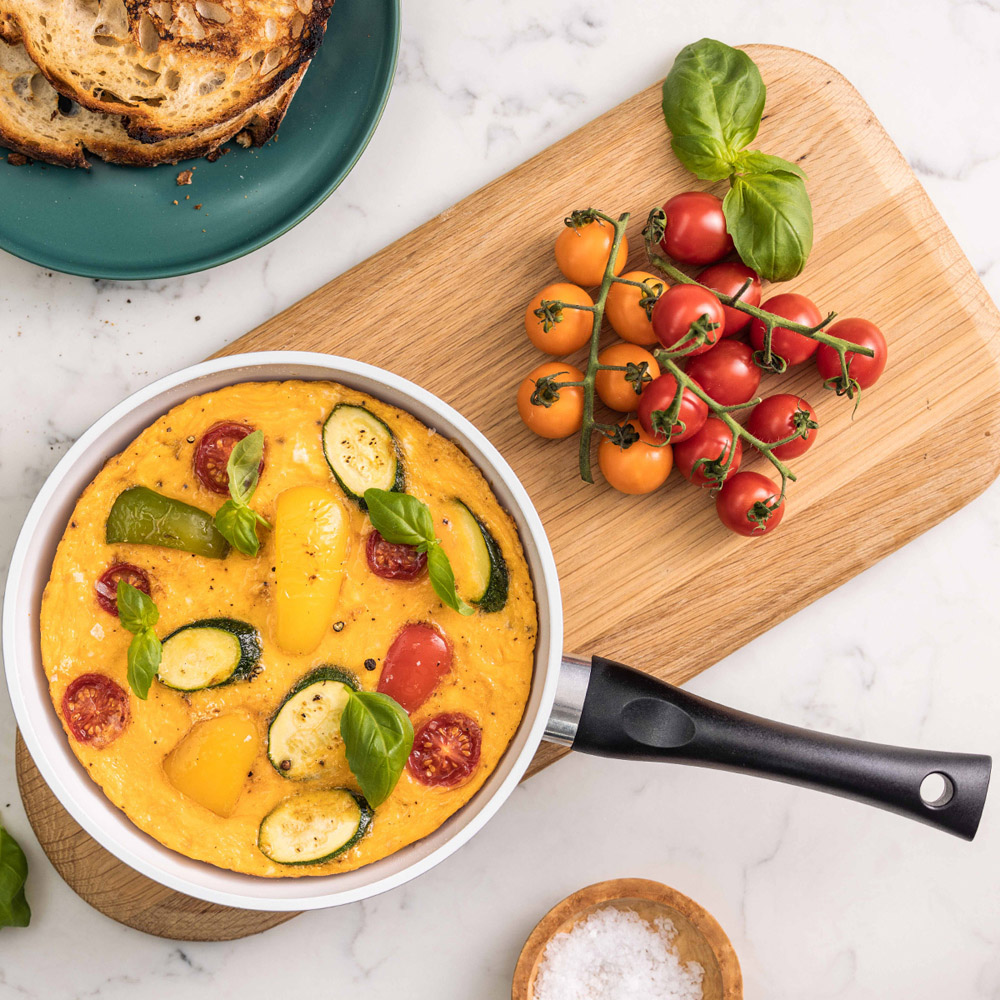 Make a stylish and useful addition to your kitchen with this JML Ceracraft Pro Red Pan. Made with an original Ceracraft construction and a cooking surface that's six times tougher and twice as non-stick, this pan will add class to your kitchen even when they are not in use. They make non-stick cooking much easier and make your kitchen work hassle-free. The pan is available in three different sizes including 20cm, 24cm and a whopping 28cm to suit your needs. The Swiss-engineered high-gloss, white 'Ceradure' ultra-tough ceramic coating makes it the most non-stick pan created for cooking entire meals without much oil or fat. Plus, this helps you cook healthier meals for you and your family. Size: 20cm.