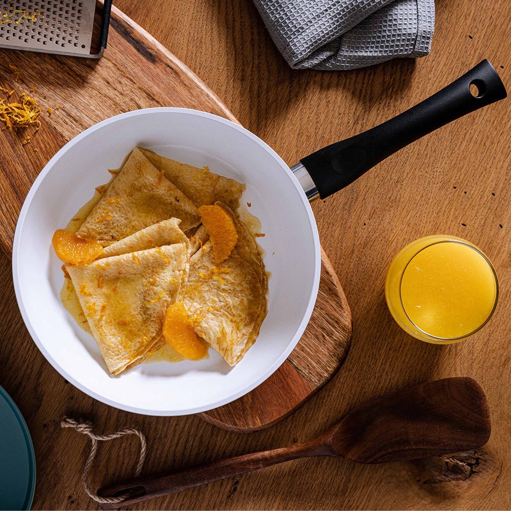 Make a stylish and useful addition to your kitchen with this JML Ceracraft Pro Black Pan. Made with an original Ceracraft construction and a cooking surface that's six times tougher and twice as non-stick, this pan will add class to your kitchen even when they are not in use. They make non-stick cooking much easier and make your kitchen work hassle-free. The pan is available in three different sizes including 20cm, 24cm and a whopping 28cm to suit your needs. The Swiss-engineered high-gloss, white 'Ceradure' ultra-tough ceramic coating makes it the most non-stick pan created for cooking entire meals without much oil or fat. Plus, this helps you cook healthier meals for you and your family. Size: 28cm.