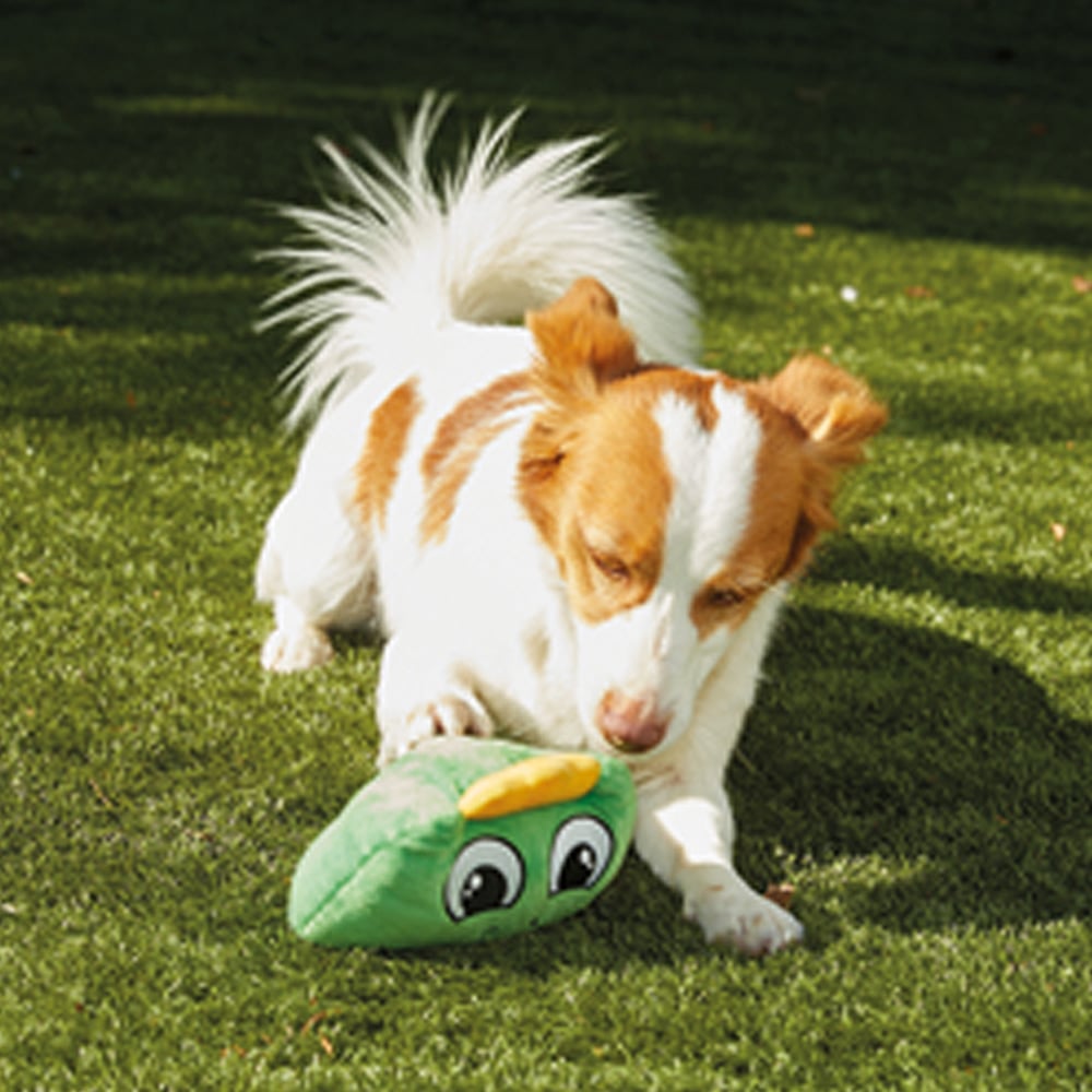 Keep your furry friend happy, healthy, and entertained for hours with the JML Chuckle Chums Dino Interactive Dog Toy. Featuring motion-activated sensors, it automatically wiggles and makes a dog sound when your dog touches or bites it. This engages your dog's natural play instinct and can help to reduce anxiety and boredom. It is perfect for dogs of all sizes and ages, and it's built to last, even with the toughest play sessions. It also features a convenient sleep function, so you don't have to worry about it draining the battery when your dog is sleeping.