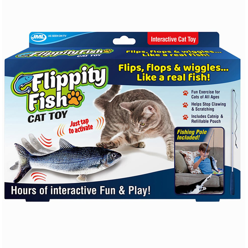 Provide a unique and engaging play experience with he JML Flippity Fish. With its realistic flipping, flopping, and wiggling movements, it mimics the behaviour of a real fish, captivating your feline friend's attention. What's more, this toy comes with its own play fishing rod, allowing you to participate in interactive play sessions with your beloved cat. The internal mechanism of Flippity Fish is designed to ensure your cat's safety while providing an authentic fish-like motion. Activating the toy triggers its flipping, wiggling, and flopping actions, stimulating your cat's natural hunting and pouncing instincts. Your cat will be mesmerised by the lifelike movements and will eagerly jump, catch, and flip Flippity Fish. Additionally, the toy features an internal lithium-ion battery that can be conveniently recharged using the included USB cable, eliminating the need for frequent battery replacements.