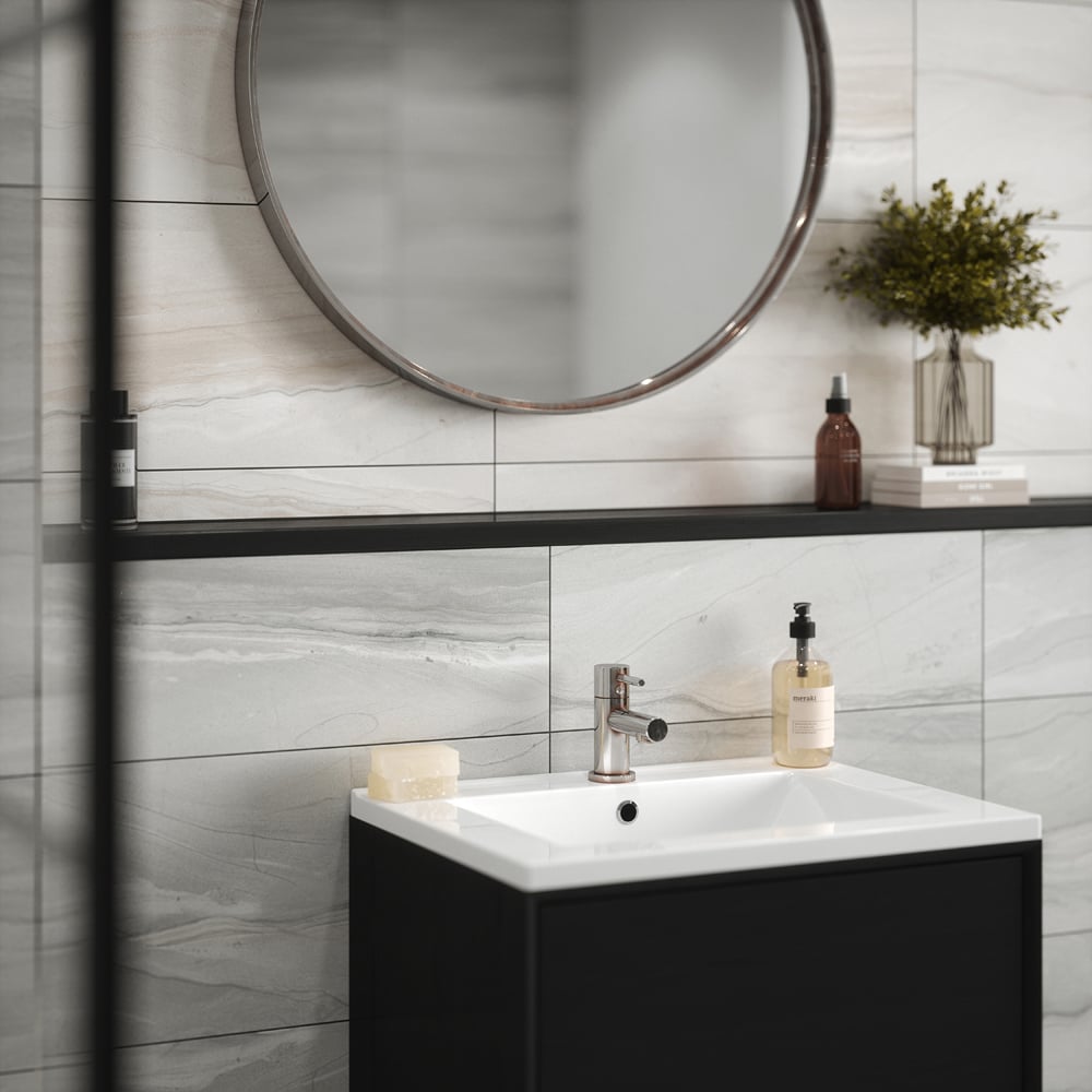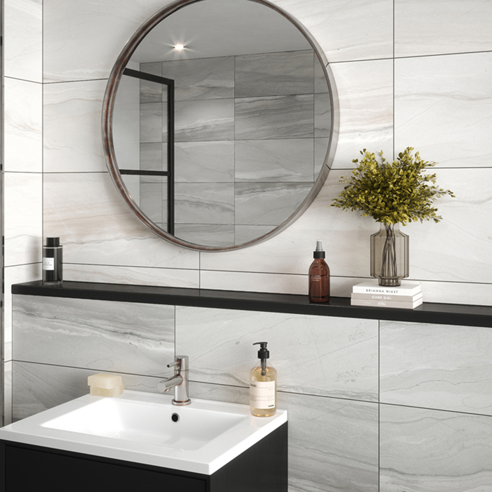 - Large format design suits bathrooms and kitchens for easy cleaning
