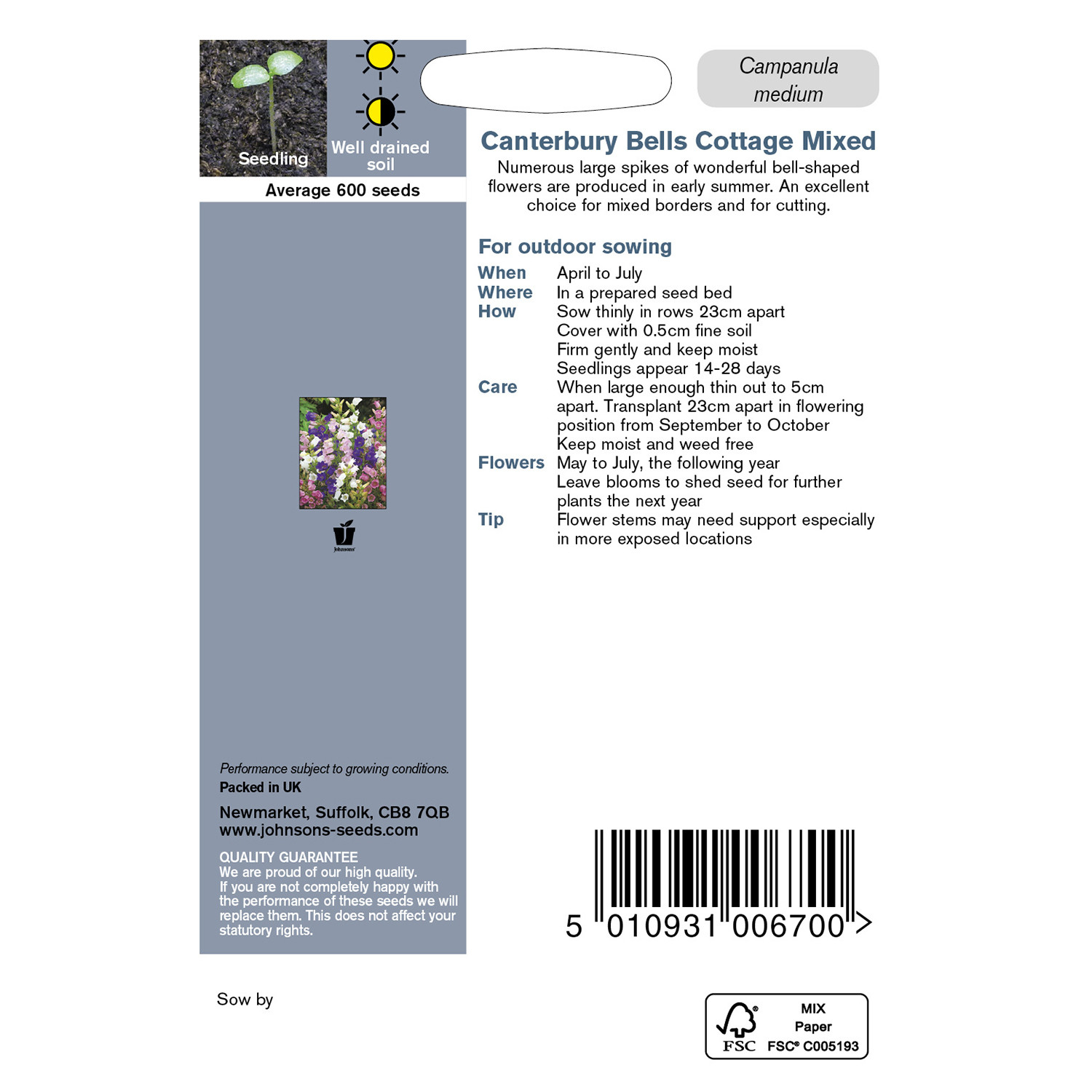 A beautiful addition to your garden, this Pack of Canterbury Bells Cottage Mixed Seeds are simple cottage garden flowers for early summer. Easy to grow, simply plant in well drained soil between April to July for flowers in May to July. A great flower for any garden, this flower is a great way to bring colour in to your surroundings.