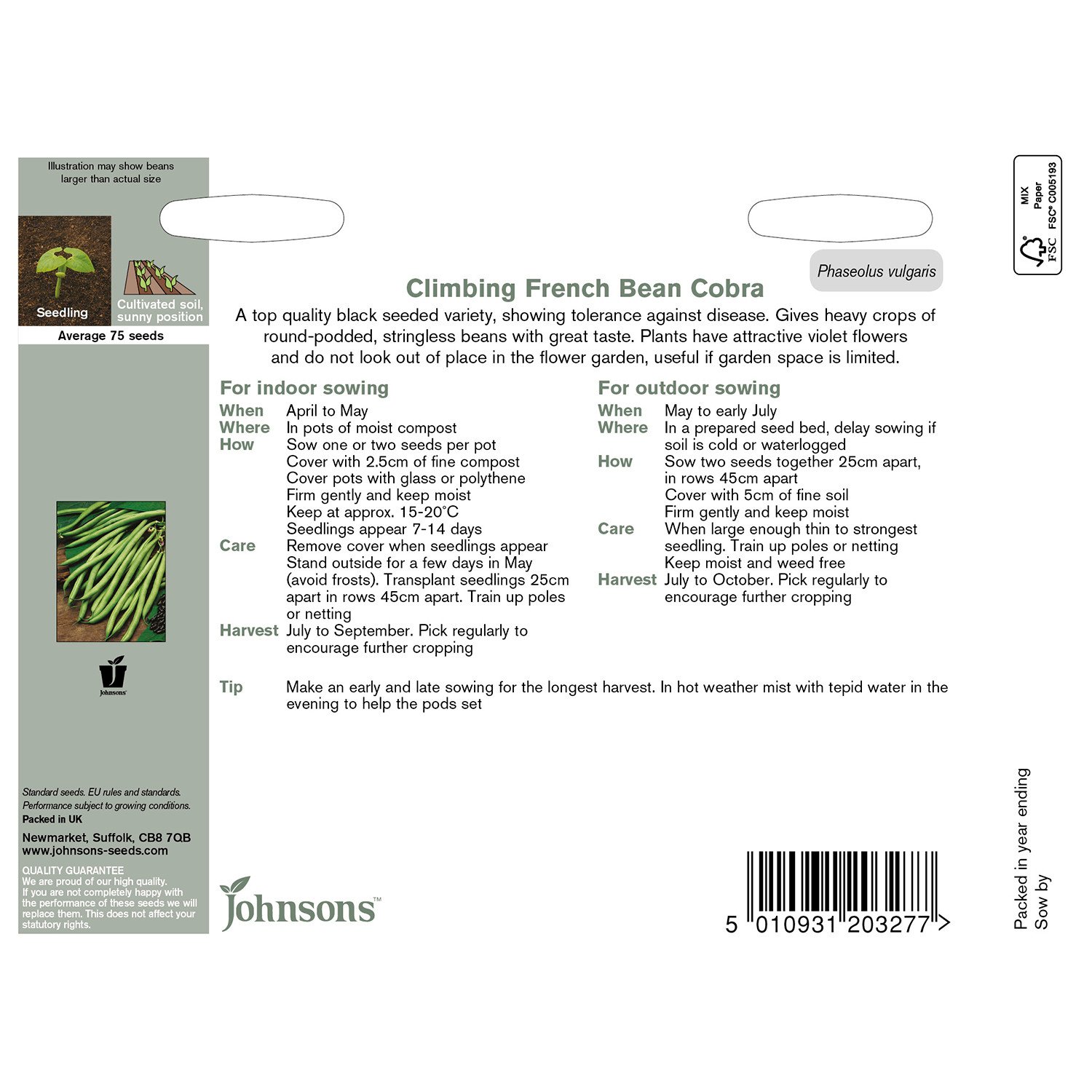 Growing attractive violet flowers alongside their tasty crop, these Cobra Climbing French Bean Seeds are perfect for planting in flower beds if space is tight. Producing a high-yielding crop of rounded pods with delicious, stringless beans, these climbing french beans are a great addition to your garden.