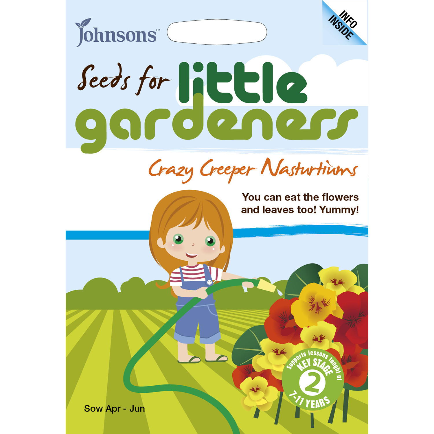 Perfect for sowing outdoors, the Johnsons Little Gardeners Crazy Creeper Nasturtiums are guaranteed to impress any young gardener. Boasting mixed jewel colouring, edible leaves, and even edible flowers, these stunning Nasturtiums are designed to be sown between April and June.