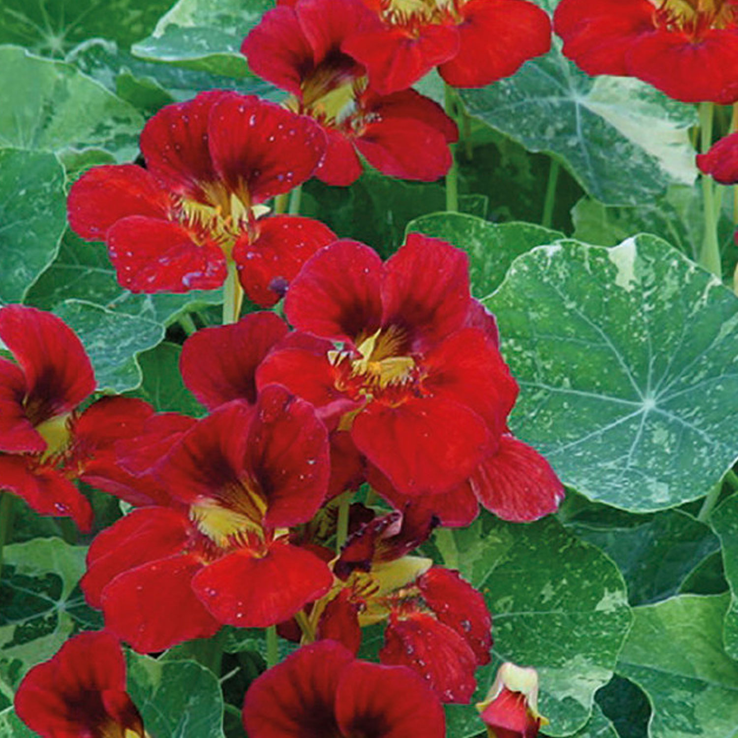 Boating deep red blooms with distinctive central markings on spreading, this Pack of Red Troika Nasturtium Flower Seeds is sure to help bring a splash of colour to any mixed container, filling gap, or bright Summer border. Suitable for sowing into well-drained soil between the months of April and June, these desirable variegated plants even showcase petals and leaves that are suitable for use in salads and even as a garnish.