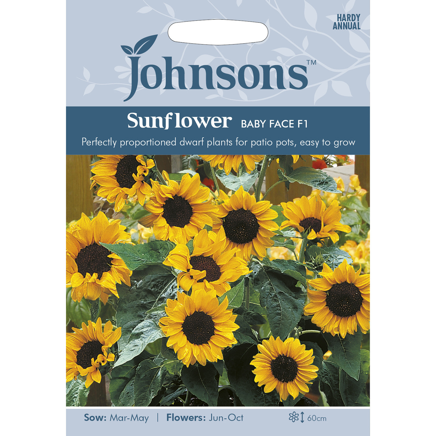 Pollen-free baby sunflowers, this Pack of Baby Face F1 Sunflower Seeds is fantastic for patio pots or the front of beds or borders. Easy to grow, these can be sown direct into containers. Great for any garden, simply plant between March and May for flowers in June through October.
