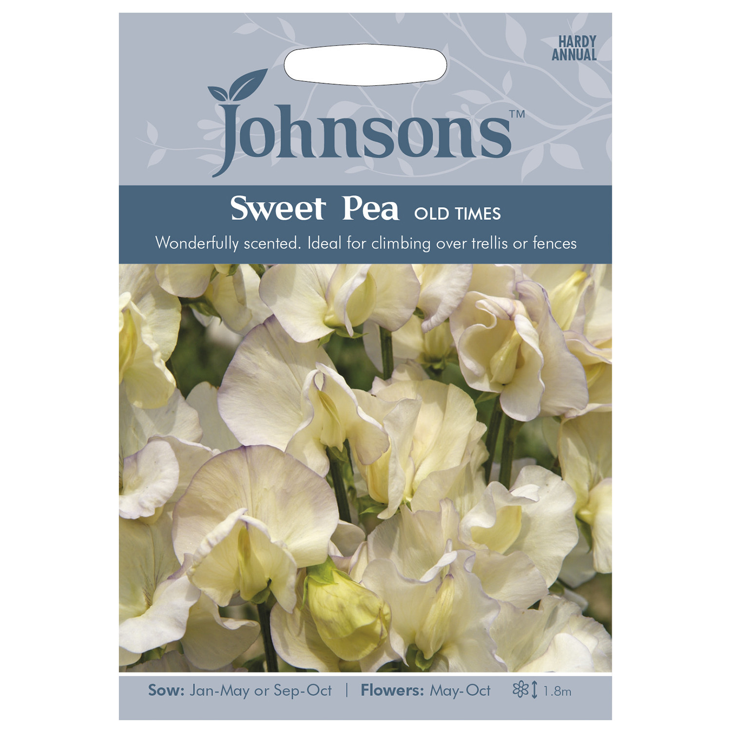 Perfect for growing over a trellis or a fence, as well as for creating a stunning scented screen, this Pack of Old Times Sweet Pea Flower Seeds is perfect for any keen gardener looking to add a splash of colour to their garden. Suitable for sowing into well-drained soil between the months of January and May, or between September and October, these lime-cream blooms with blue-veined accenting, are sure to become a firm favourite in no time.