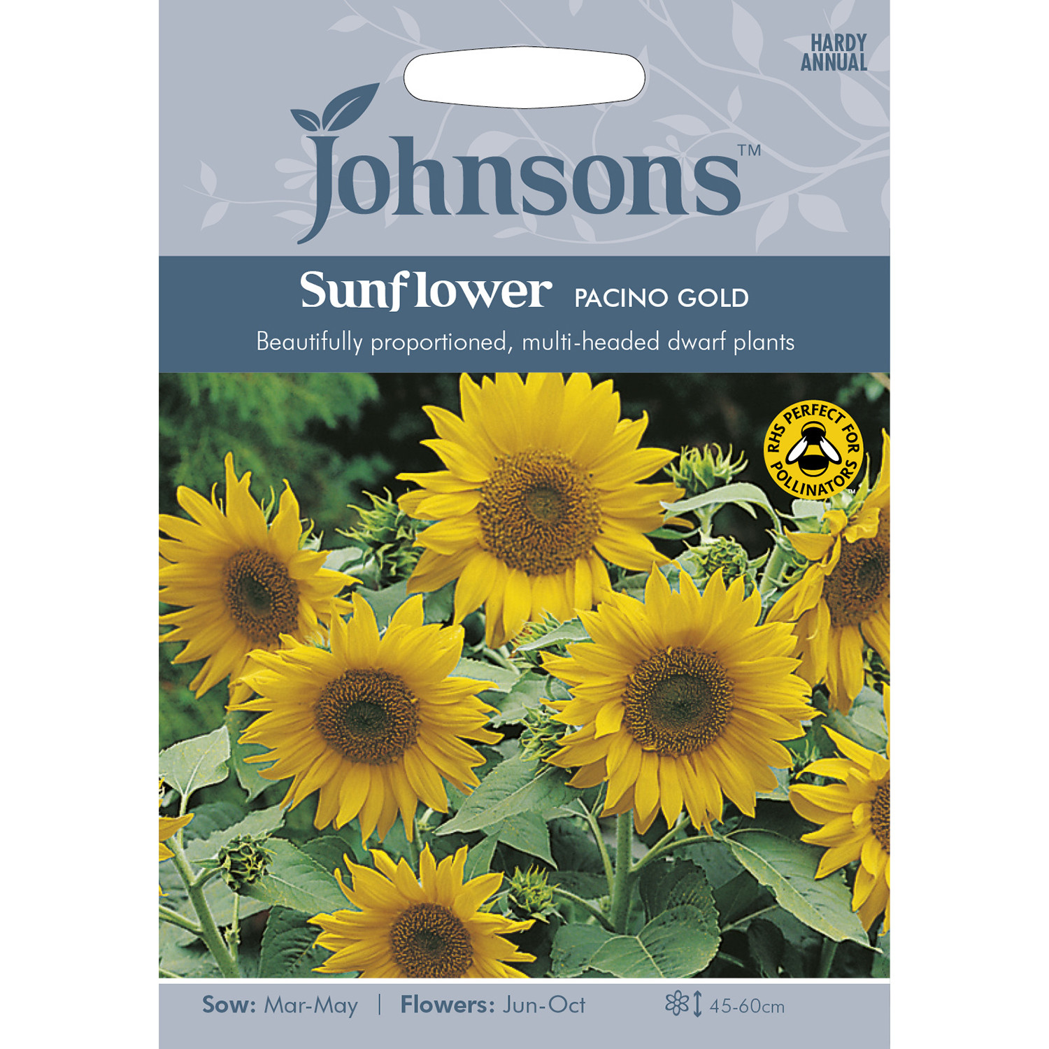 A beautifully proportioned dwarf variety, this Pack of Pacino Gold Sunflower Seeds produces many heads on each plant. Can be grown in the border or in large pots on the patio. Great for smaller gardens, simply plant between March and May for flowers in June through October.