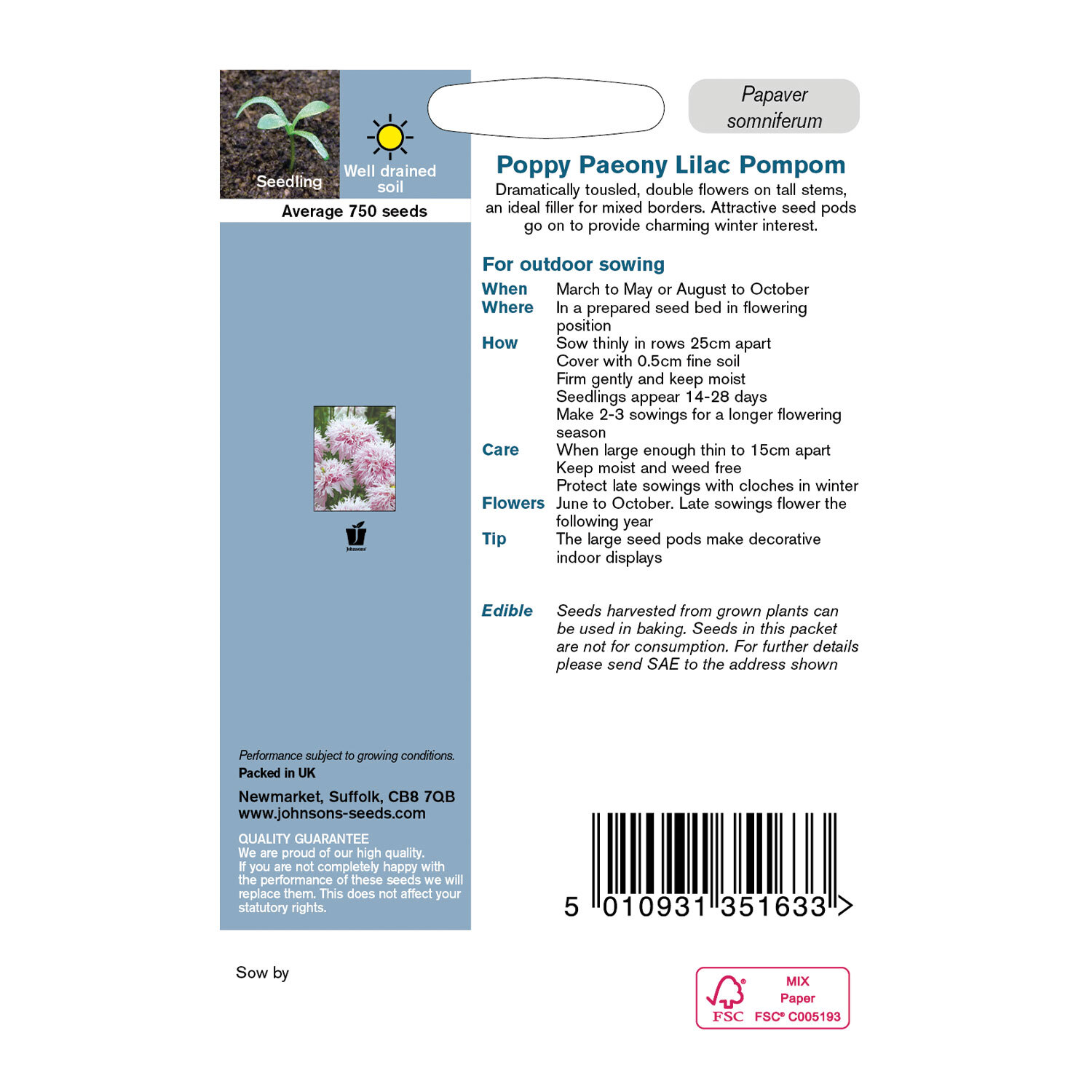 Johnsons Poppy Paeony Pompom Lilac Flower Seeds