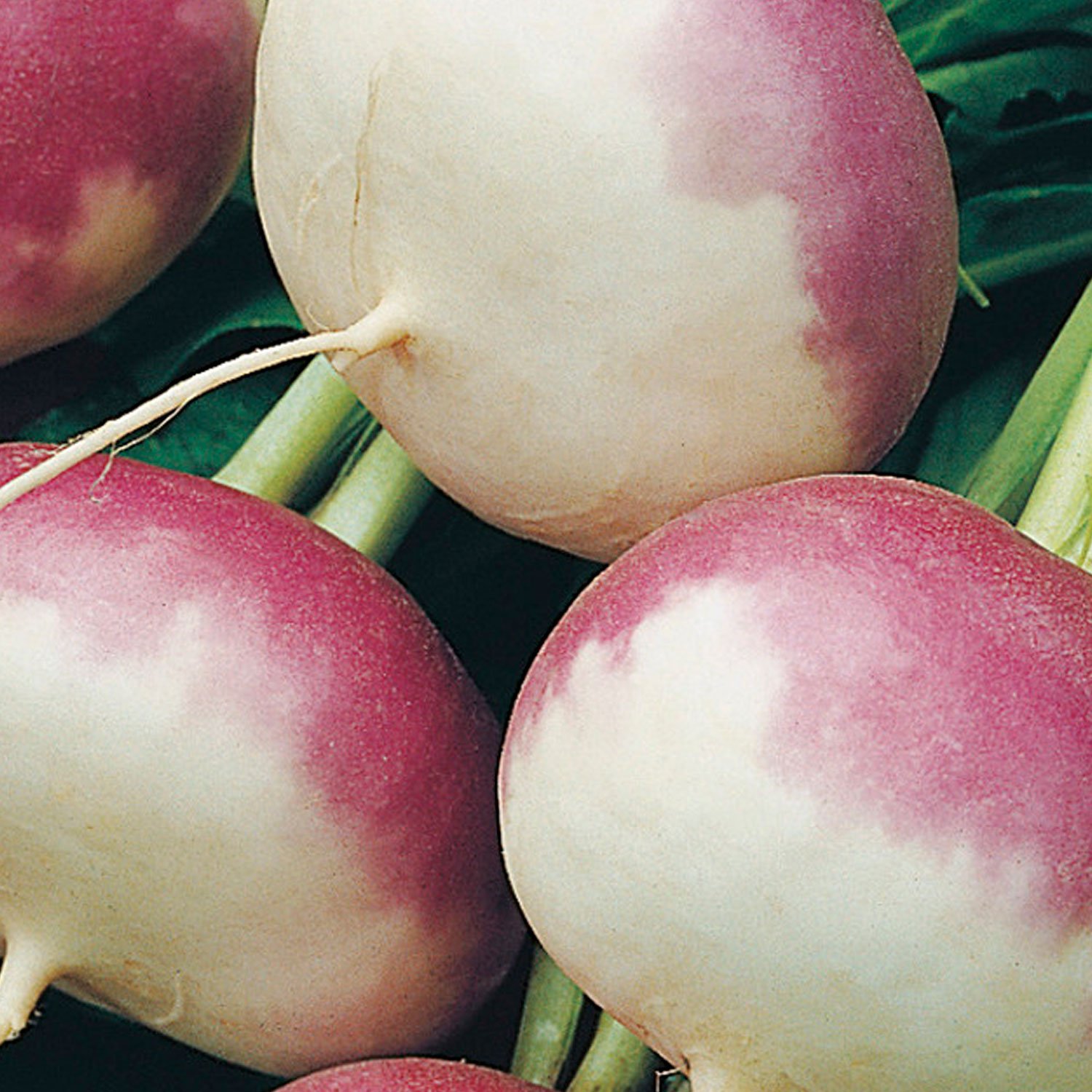 This classic variety of Purple Top Milan Turnip Seeds is quick to mature and can be harvested as either baby or full-grown crop. Flat-topped with attractive smooth, purple roots and white skin, these turnips have a mild and crisp flavour that's perfect for a variety of dishes.
