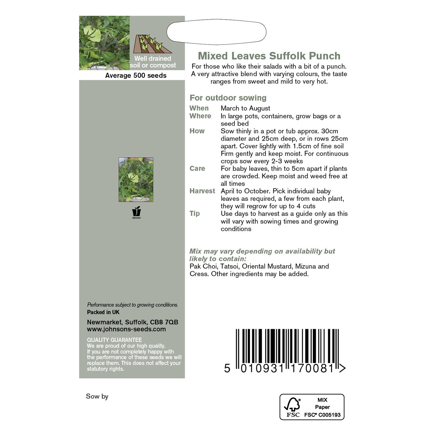 For those who like their salad to to pack a bit of a punch, this Pack of Suffolk Punch Mixed Leaves is a very attractive blend with varying shades of green and a hint of purplish red. Tasting from mild to very hot, simply plant from March to August for harvesting between April and October.