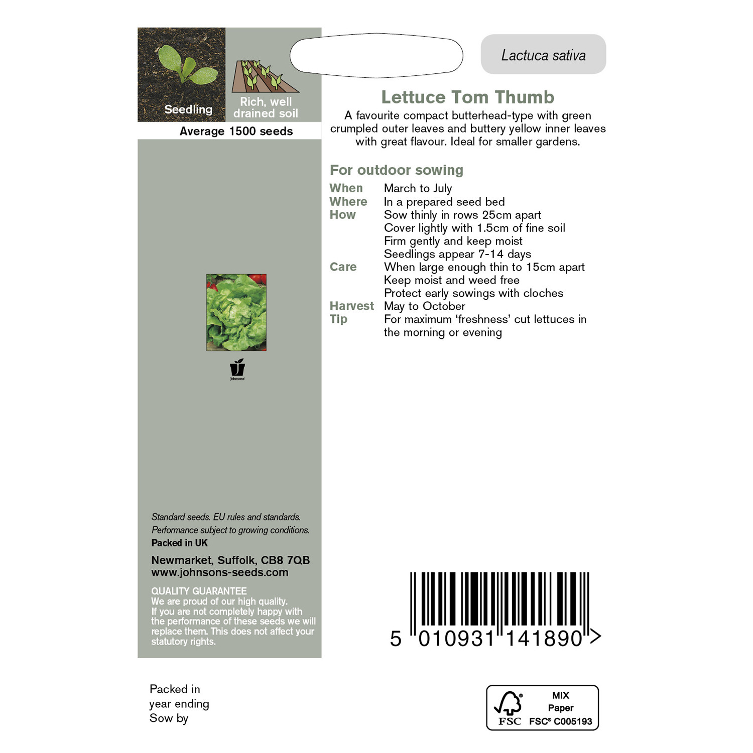 A favourite compact butterhead-type, this Pack of Tom Thumb Lettuce Seeds produce green crumpled outer leaves and buttery yellow inner leaves with great flavour. Ideal for smaller gardens, simply plant from March to July for harvest in May through October.