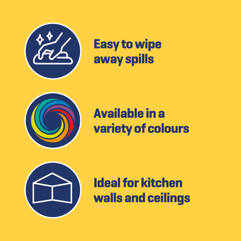 Johnstone's Kitchen Grease Resisting Matt Paint has been specially formulated with grease-resisting properties to provide protection, as well as colour, to areas of high condensation in your home. Suitable for interior walls and ceilings, this tough and durable paint is perfect for covering the walls and ceilings in high-traffic areas suseptable to grease, such as the kitchen.