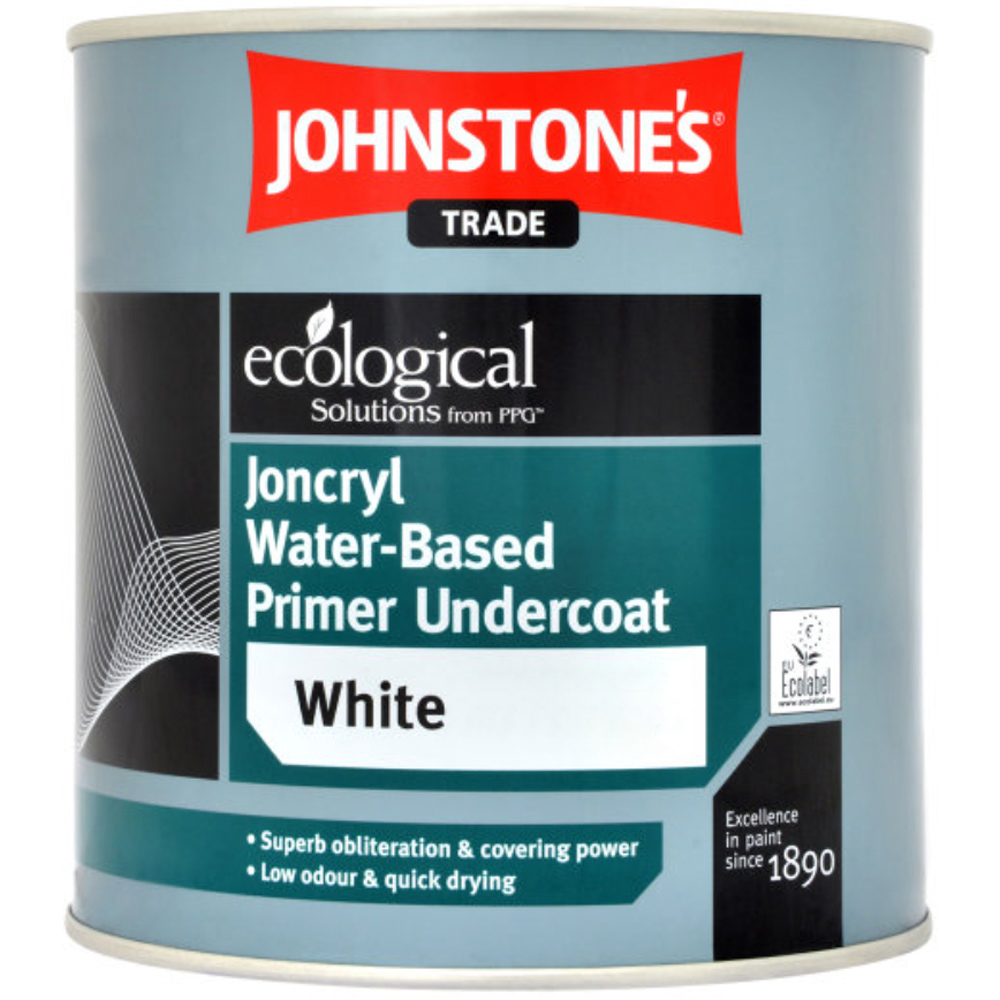 Transform your space with a stroke of colour and creativity with Johnstone's Trade White Joncryl Undercoat Primer 1L. This primer and undercoat is a highly versatile, water-based product that is specifically formulated for use on interior wood, hardboard, cement, plaster, and brick surfaces. Its high-opacity formula ensures excellent coverage and obliteration of imperfections, while its water-based composition results in low VOCs, low odour and quick drying times. As a superior alternative to traditional solvent-based primers, it offers exceptional coverage and easy application, making it an ideal choice for a wide range of interior surfaces.