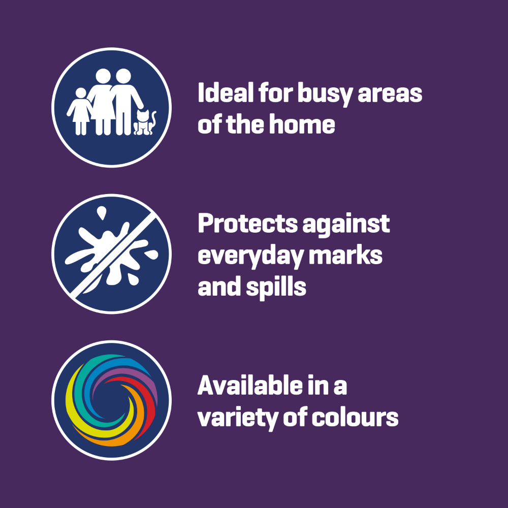 Give rooms a fresh new look with Johnstone's Washable Matt Paint. This highly durable emulsion is formulated so that everyday marks and spills can be easily wiped away without leaving shiny patches or causing the colour to fade. Not only aesthetically pleasing, this paint is also features a low odour formula, is quick drying and gives smooth, even coverage.