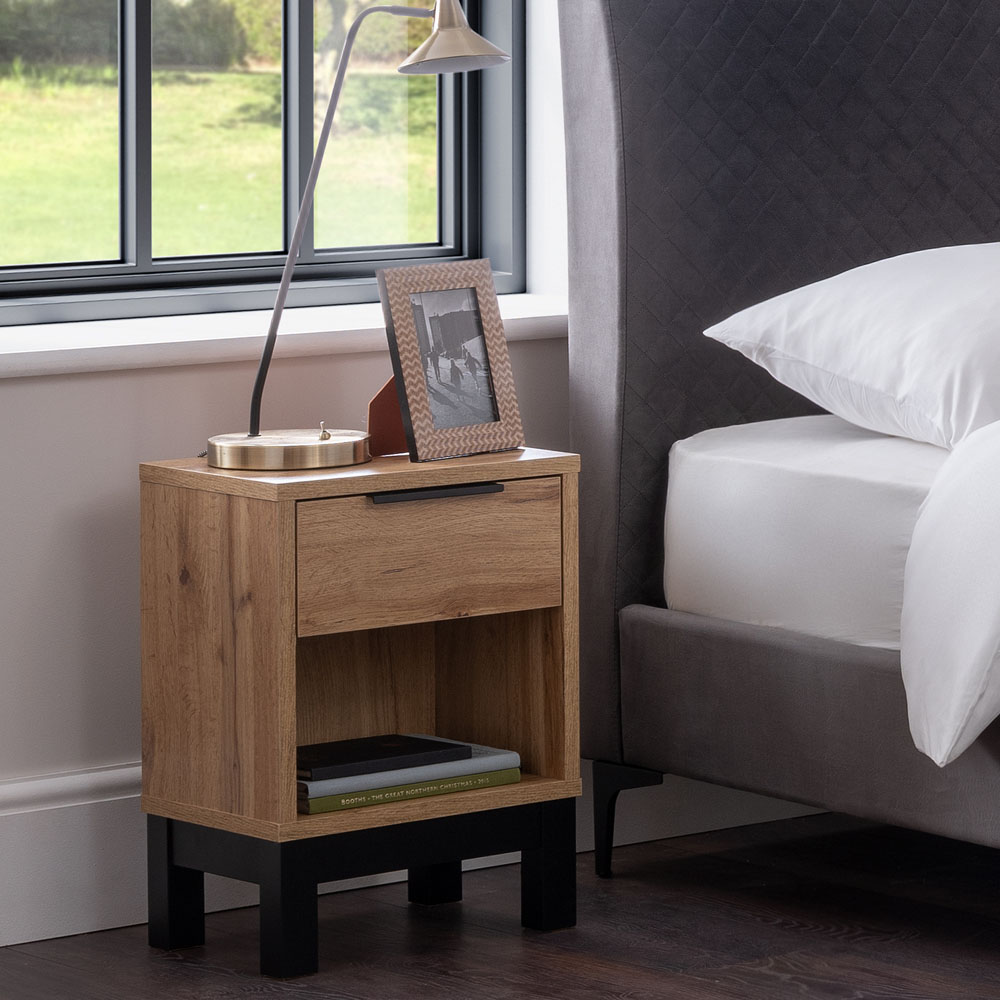 Julian Bowen Bali Single Drawer Modern Oak Effect Bedside Table