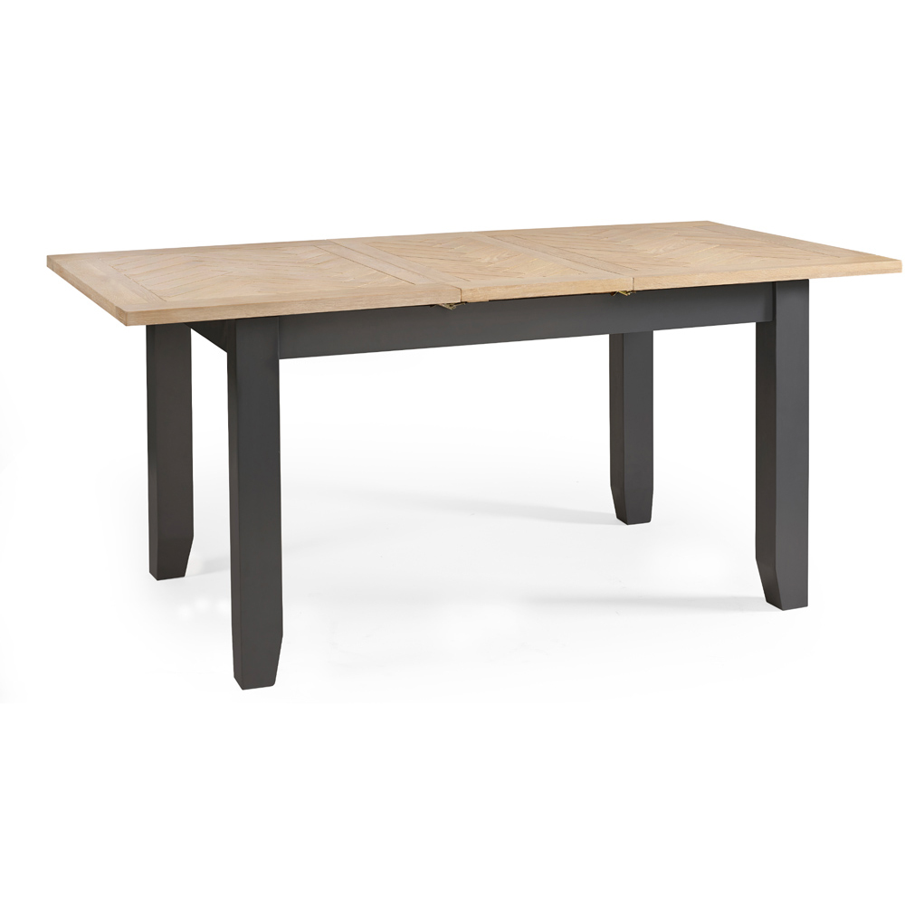 Make a trendy addition to your dining area with the Julian Bowen Bordeaux Dining Table. This sturdy dining table offers a combination of beauty and functionality for your home. Featuring a butterfly extension mechanism, this table can be used in different ways to adjust according to the occasion. It's crafted using solid wood. The dark grey finish will surely enhance your home decor. Providing a versatile and sleek space to dine, this table is guaranteed to make a contemporary statement in any home.