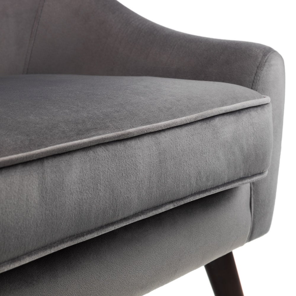 Make a classic addition to your living space with this Julian Bowen Elliot Grey Velvet Accent Chair. This classic chair features a high-quality design, beautifully curved arms and back, upholstered in chic grey velvet complemented by oak legs tipped with timeless golden tips. Also, it comes with a padded seat completed with luxurious material for a rich and comfortable look. This grey-coloured armchair can uplift your decor and make a stylish statement.