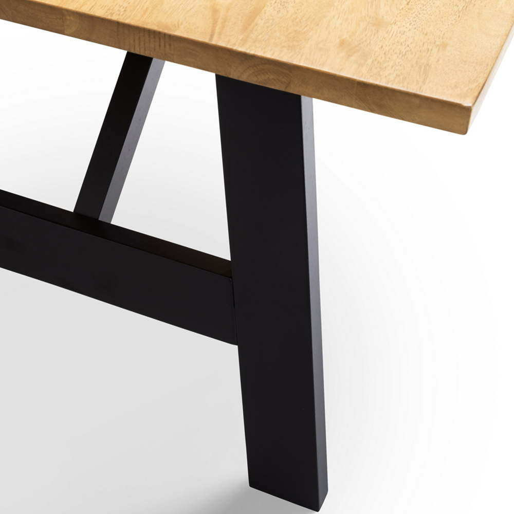 Elevate your dining area with the Julian Bowen Hockley 6 Seater Dining Table Set. This table features a 25mm rubberwood top, displaying the natural colour and the unique wood grain. It has a contrasting painted black rubberwood frame that allows the dining table to suit a variety of home interiors. This dining table is paired with six Hockley chairs, making it a stylish addition to your room.