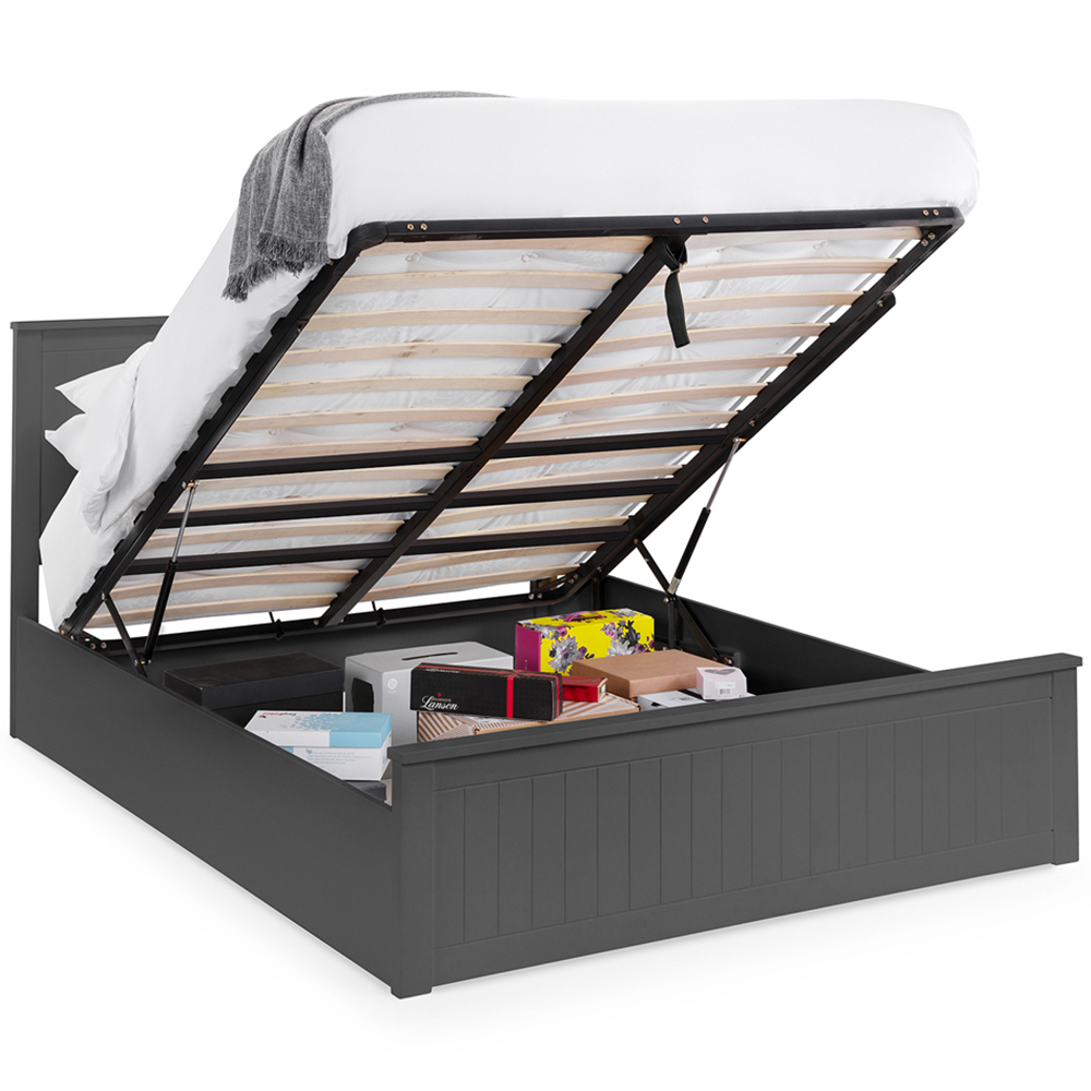 Bring a touch of elegance to your bedroom with the Julian Bowen King Anthracite Maine Ottoman Bed. With a classic aesthetic, this bed can suit various decorative styles and create a calm, peaceful environment for a good night’s sleep. The ottoman lifts easily and provides a large amount of storage, perfect for bedding and other items. The storage helps keep your home neat and organised.