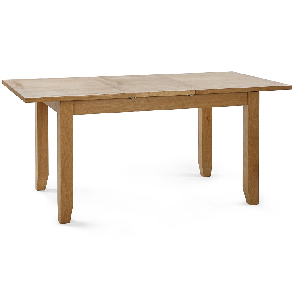 The Julian Bowen Mallory Extending Dining Table has a clean and simple design, crafted from solid oak and oak veneers. The table comfortably seats six people, with the extending feature allowing for more spacious dining.