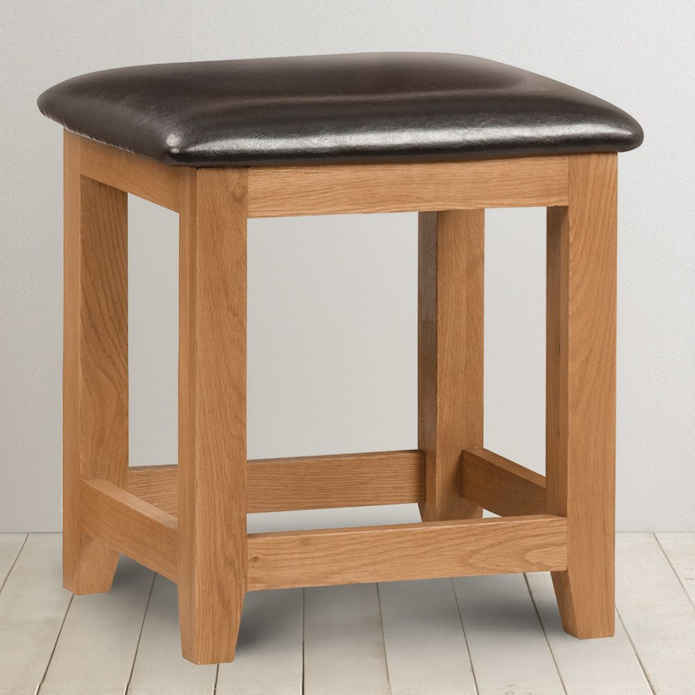 Complete your dressing space with this Julian Bowen Marlborough White Oak Dressing Table Stool. With a classic and timeless design, this beautifully constructed piece of furniture complements both traditional and contemporary decor. Comfortable to use, the stool comes with a dark brown faux leather cushioned seat. Sturdy and durable, the stool is made using solid oak veneer for reliable use.